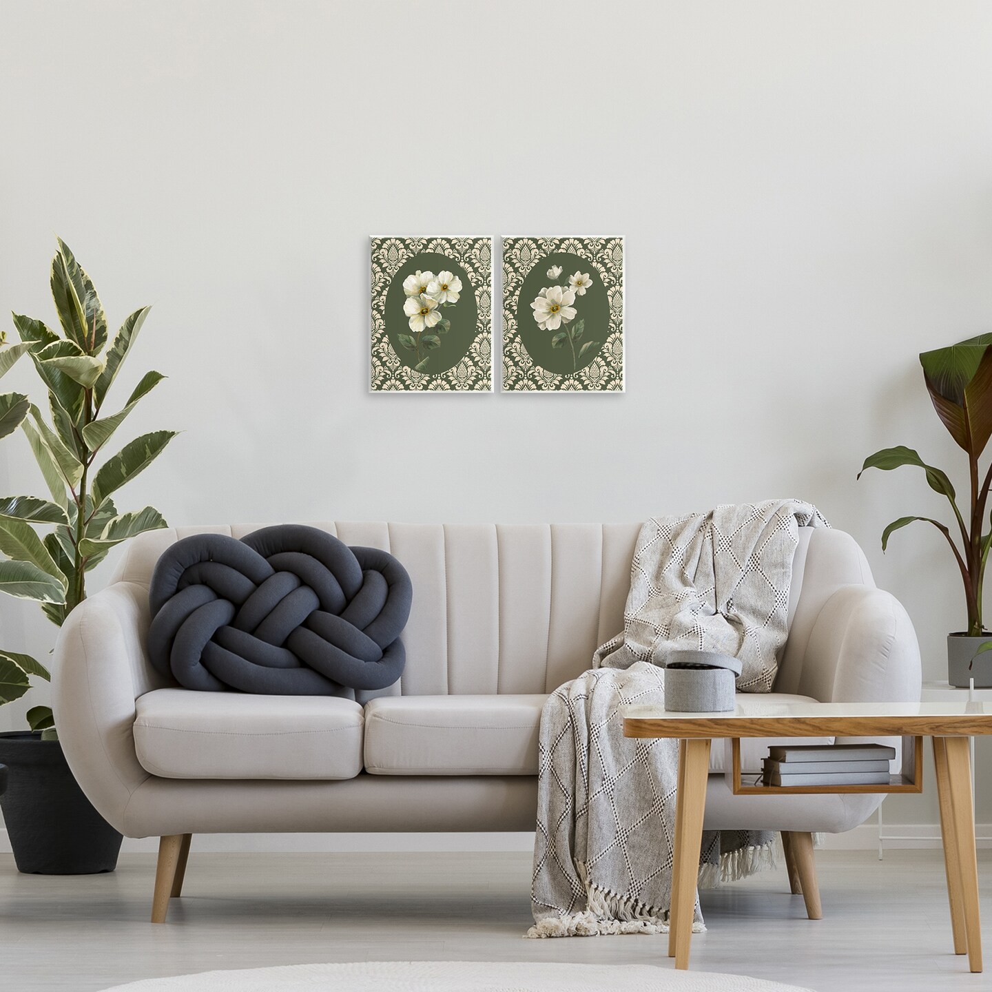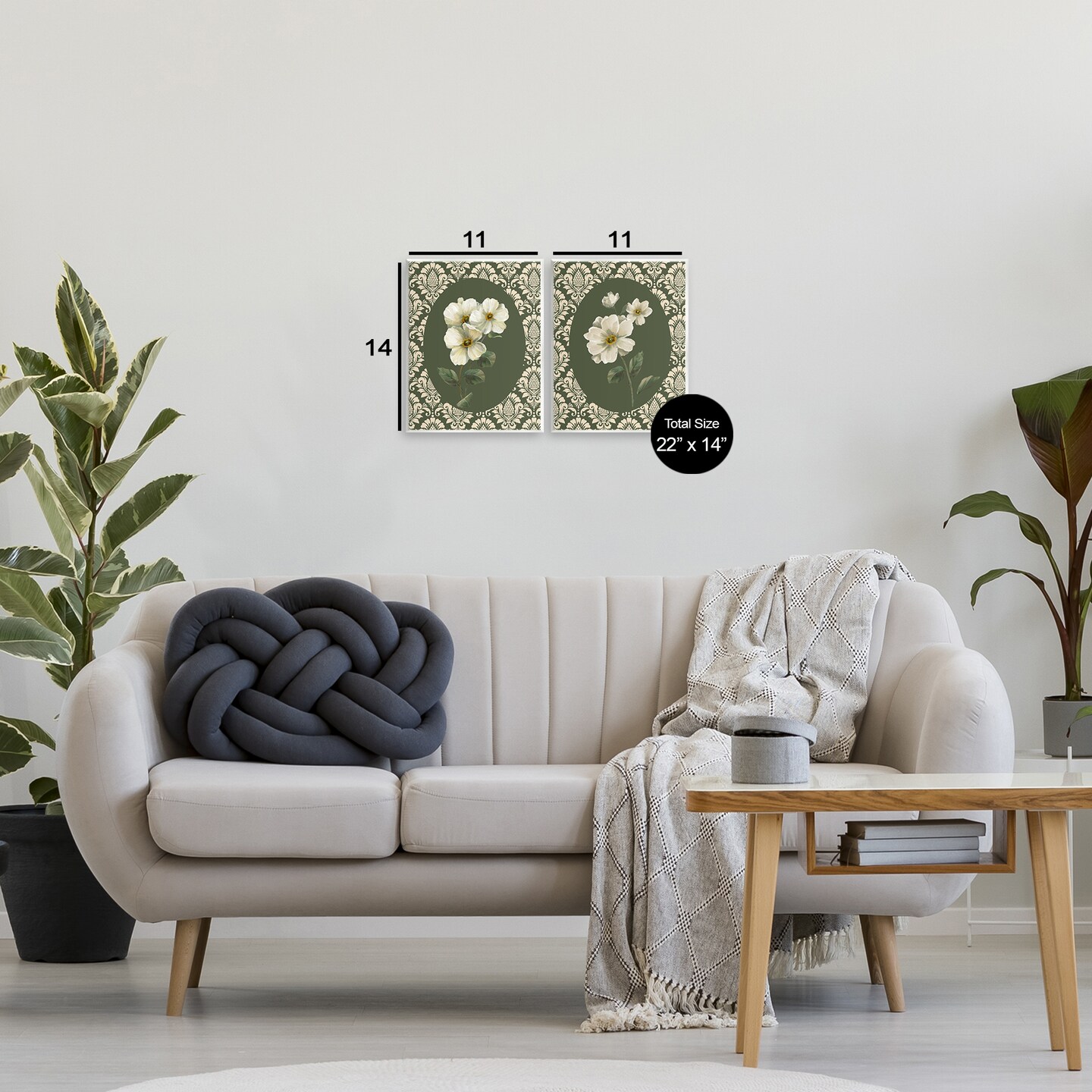 Stupell Industries Fancy Lace White Florals 2 Piece Wall Plaque Art Set, design by Nan
