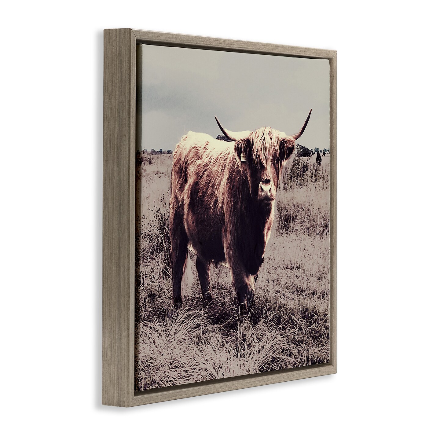 Stupell Industries Farm Cattle Rustic Vintage Styling Framed Floater Canvas Wall Art