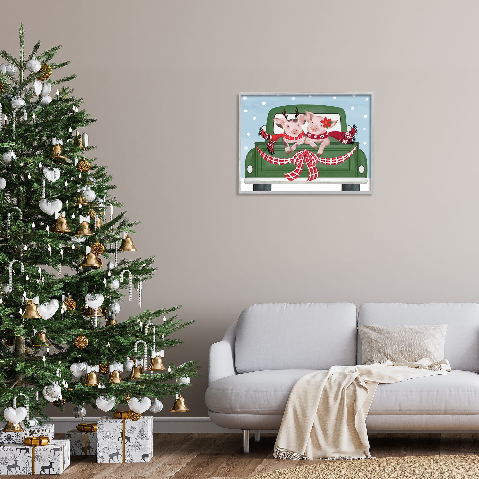 Stupell Industries Farmhouse Pigs Green Holiday Truck Framed Giclee Art