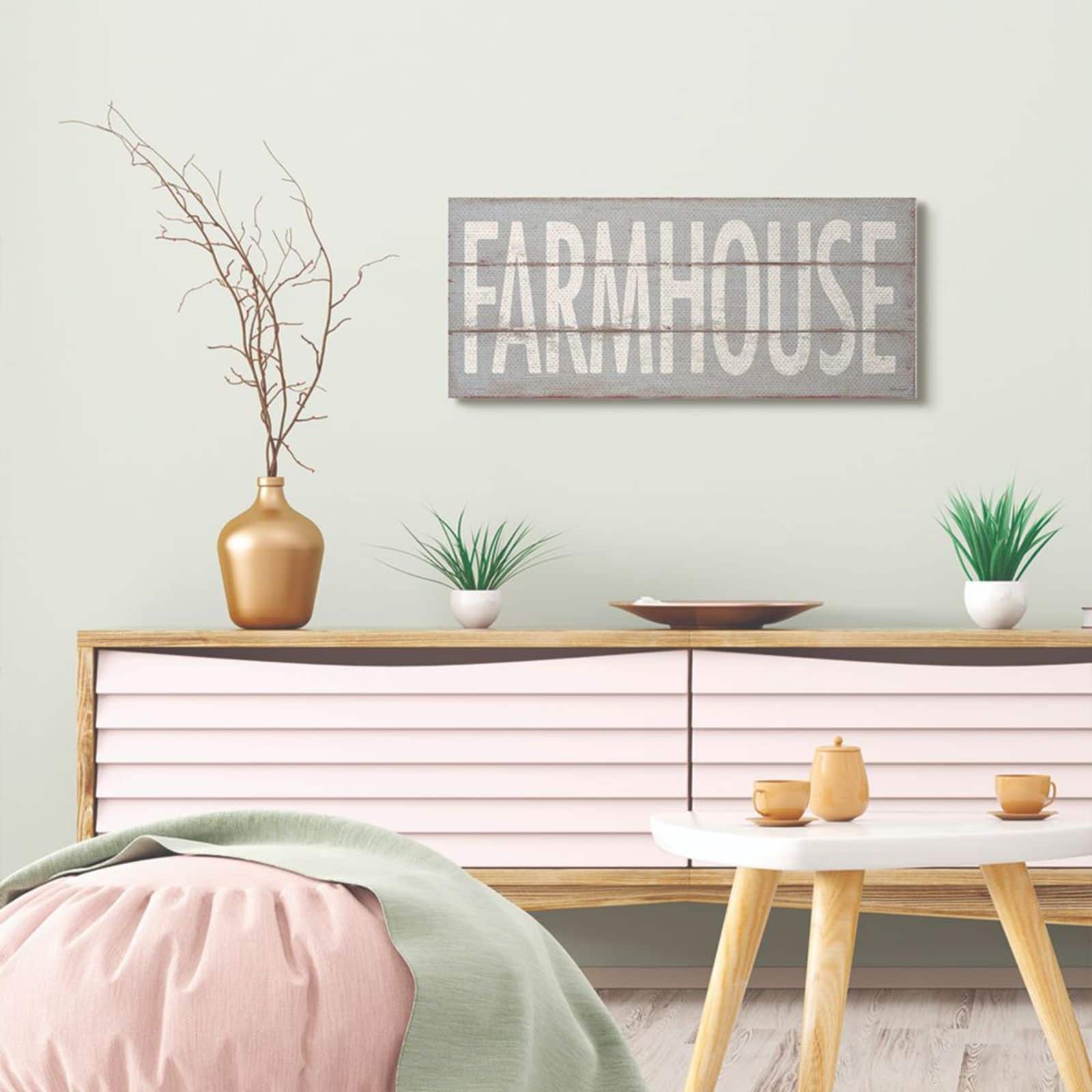 Stupell Industries Farmhouse Rustic Wood Textured Gray Word Design Canvas Wall Art