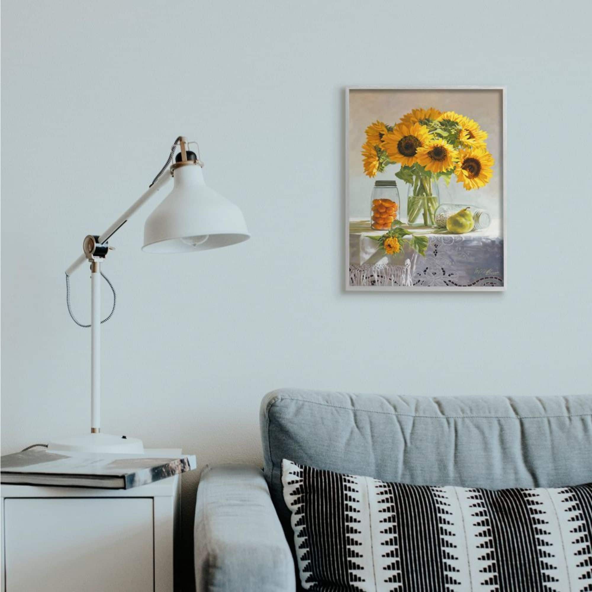Stupell Industries Farmhouse Sunflower Still Life Country Fruit Jars Framed Wall Art