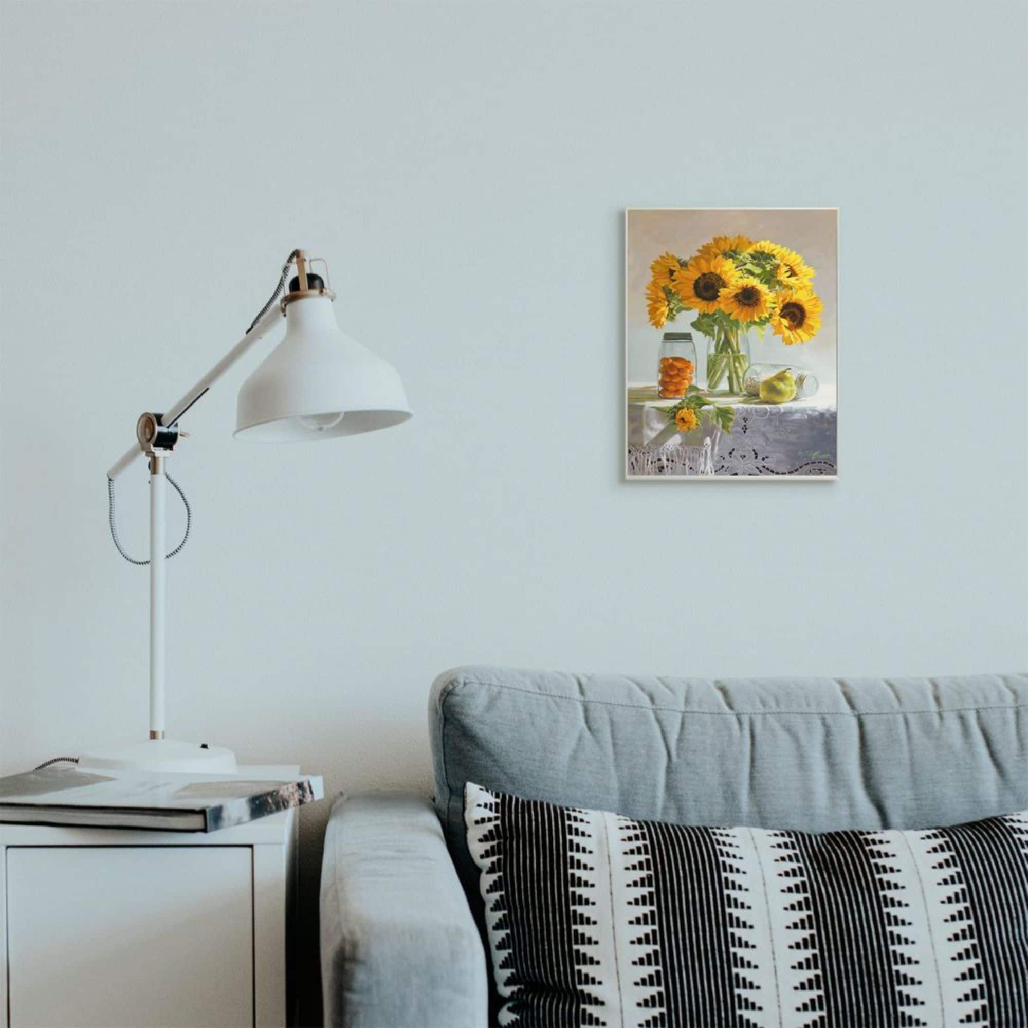 Stupell Industries Farmhouse Sunflower Still Life Country Fruit Jars Wood Wall Plaque