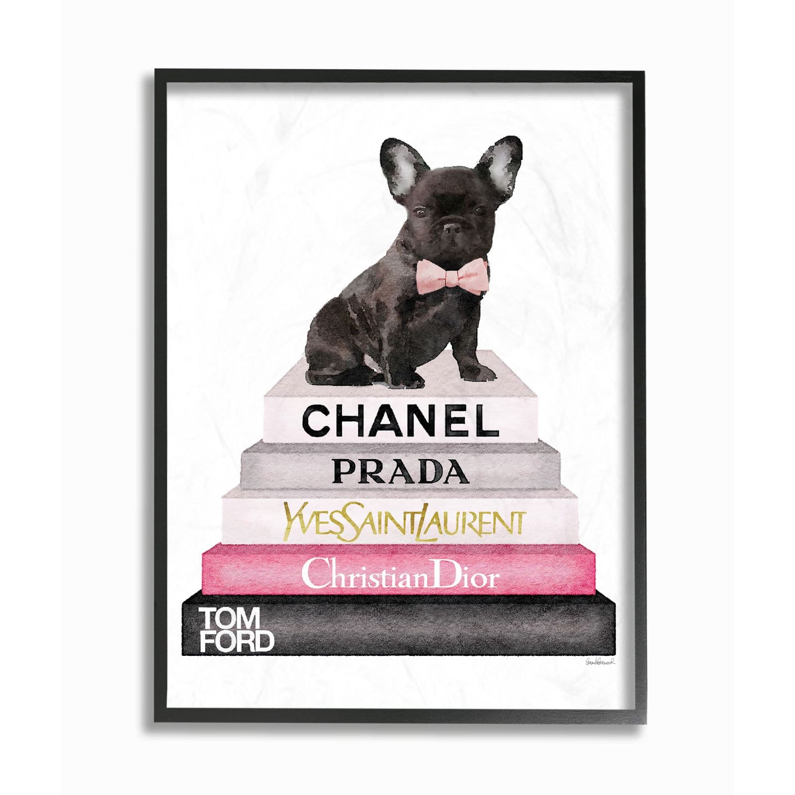 Stupell Industries Fashion Book Stack & French Bulldog Wall Art in Black Frame