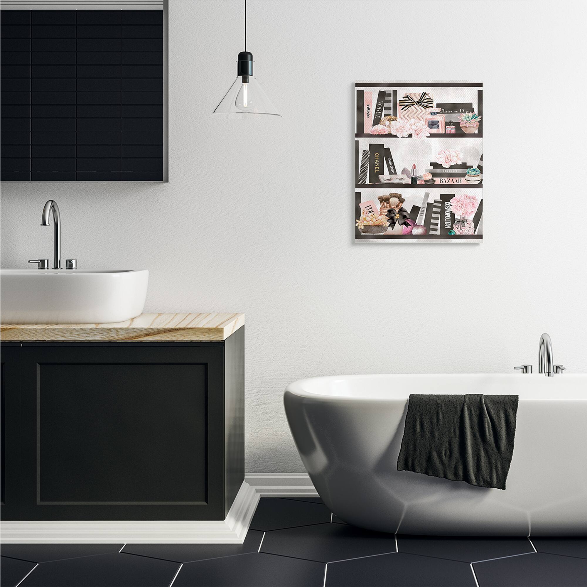 Stupell Industries Fashion Bookshelf Glam Cosmetic Accessories and Books Canvas Wall Art