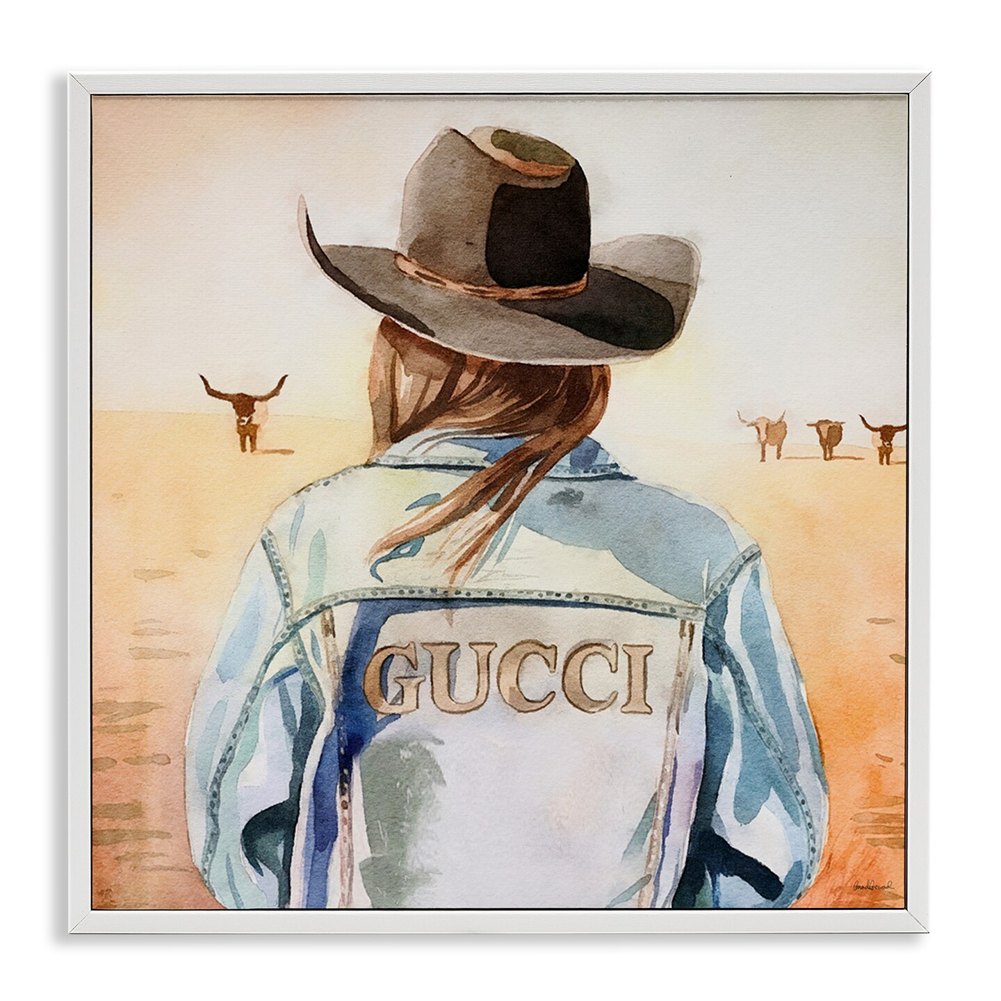 Stupell Industries Fashionable Desert Cowgirl Framed Giclee Wall Art Design by Amanda Greenwood