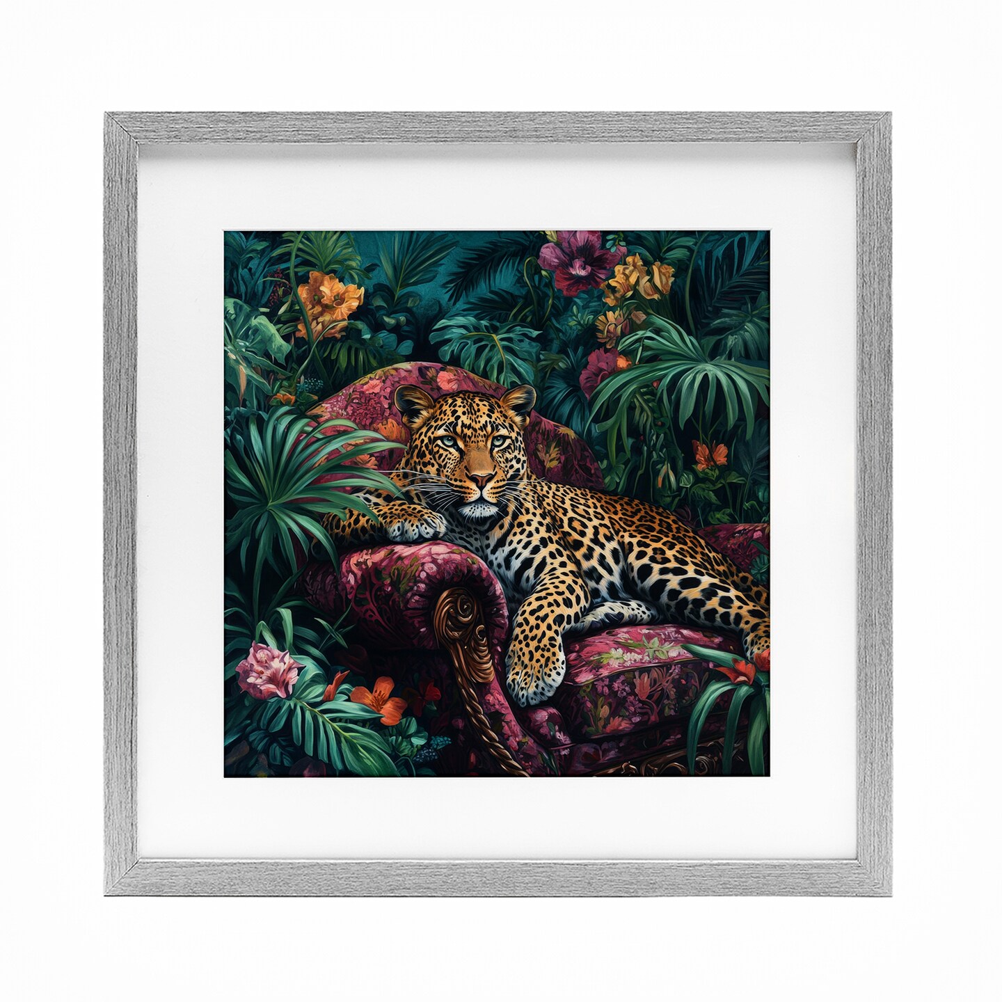 Stupell Industries Fashionable Leopard in Jungle Framed Print Under Glass, design by Petal Prints Design