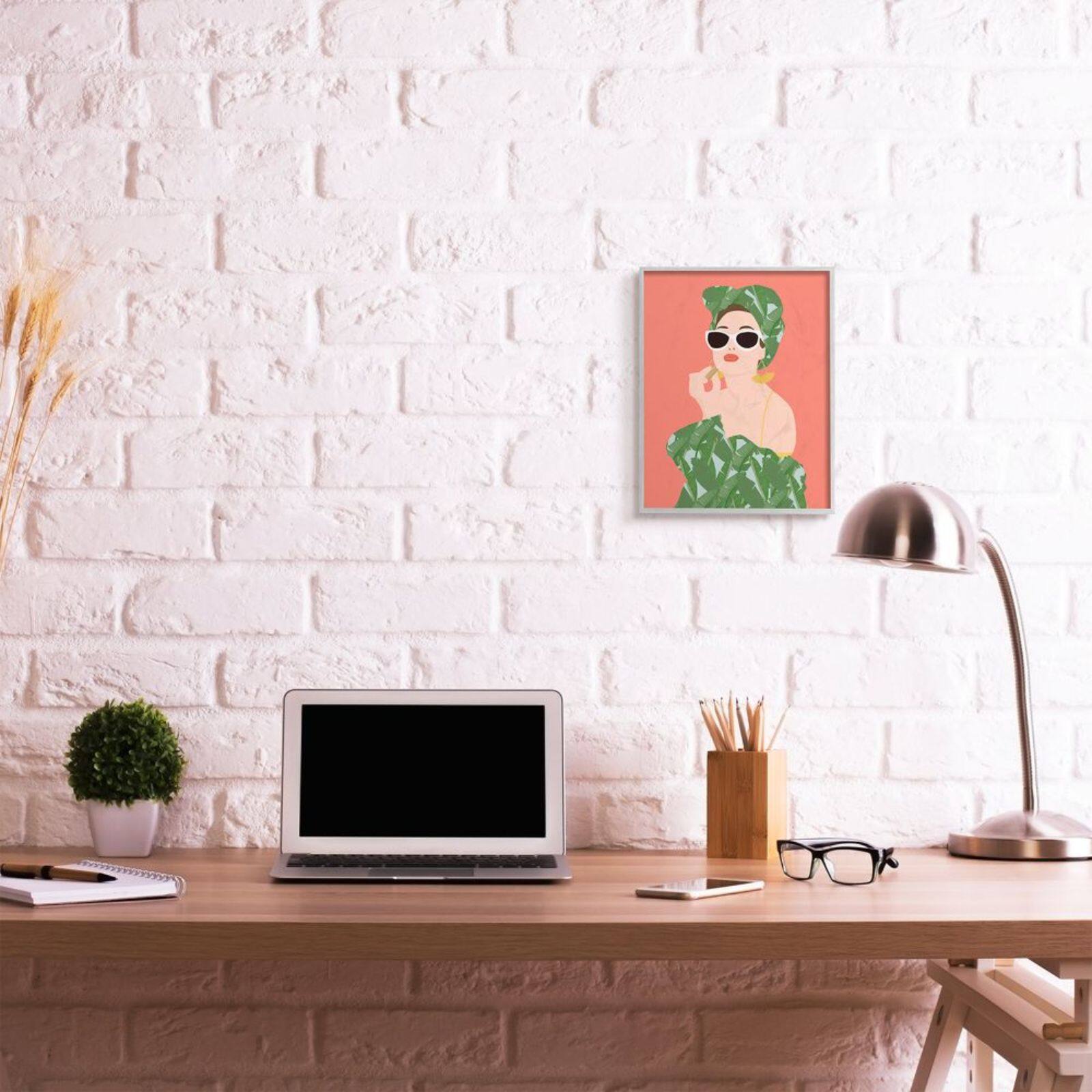 Stupell Industries Female Glamour in Tropical Fashion Lip Cosmetic Gray Framed Wall Art