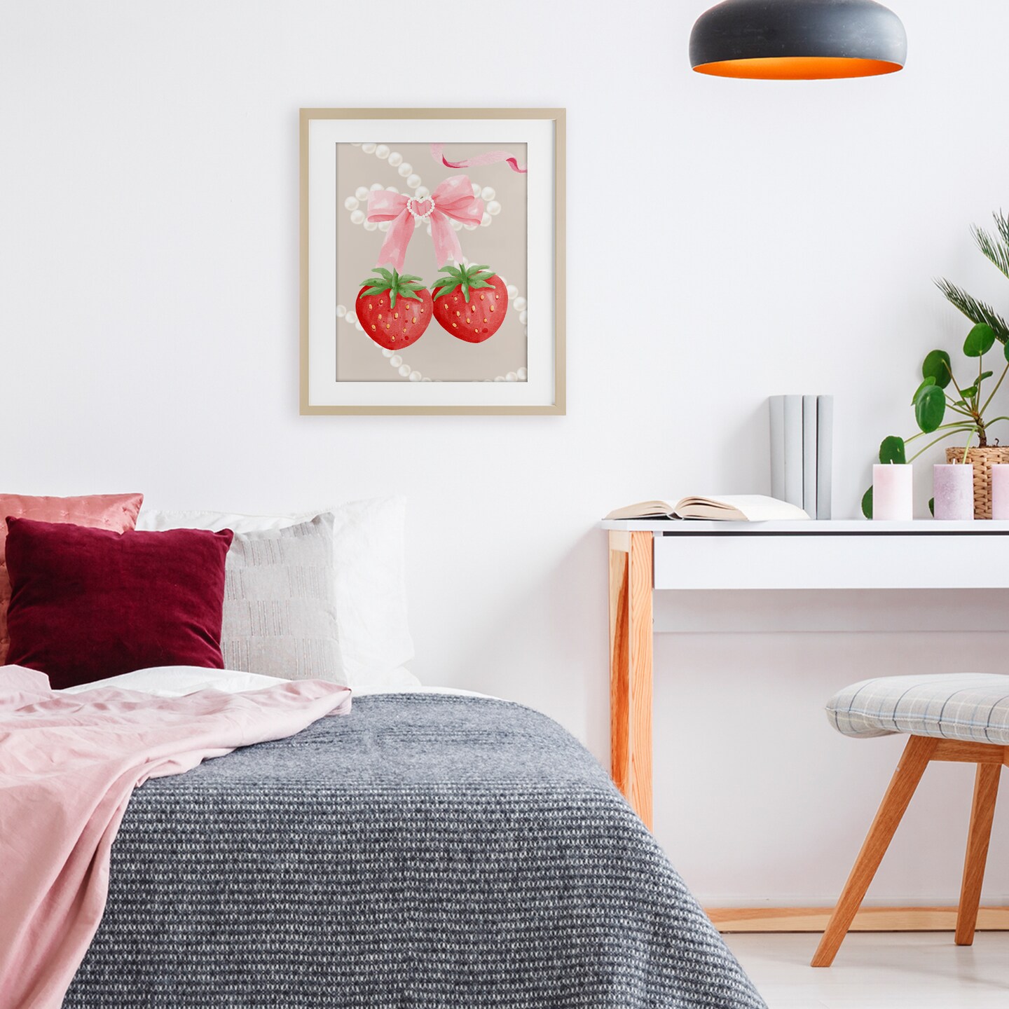 Stupell Industries Feminine Strawberry Pearls Framed Print Under Glass, design by Jesse Keith