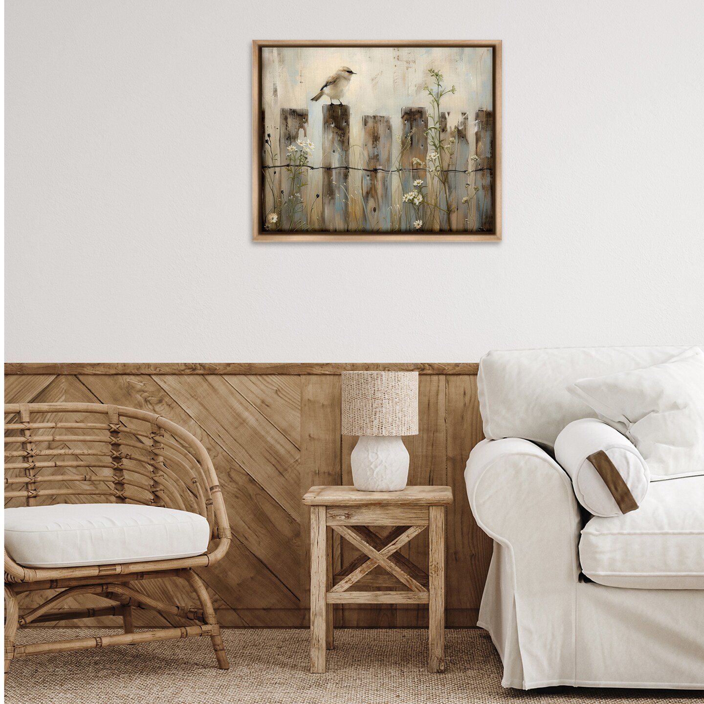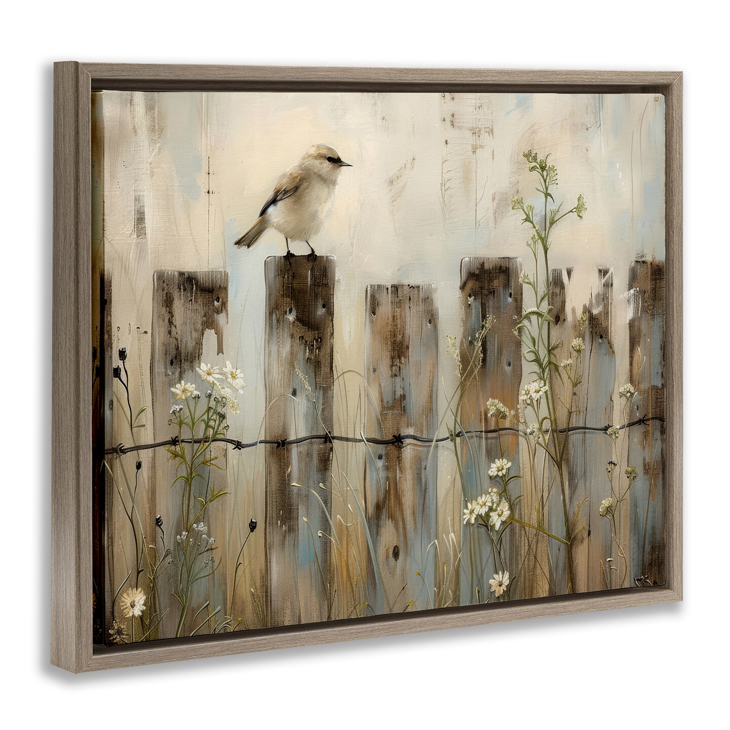 Stupell Industries Fence Perched Country Bird Floating Frame Design By Arlington Prints