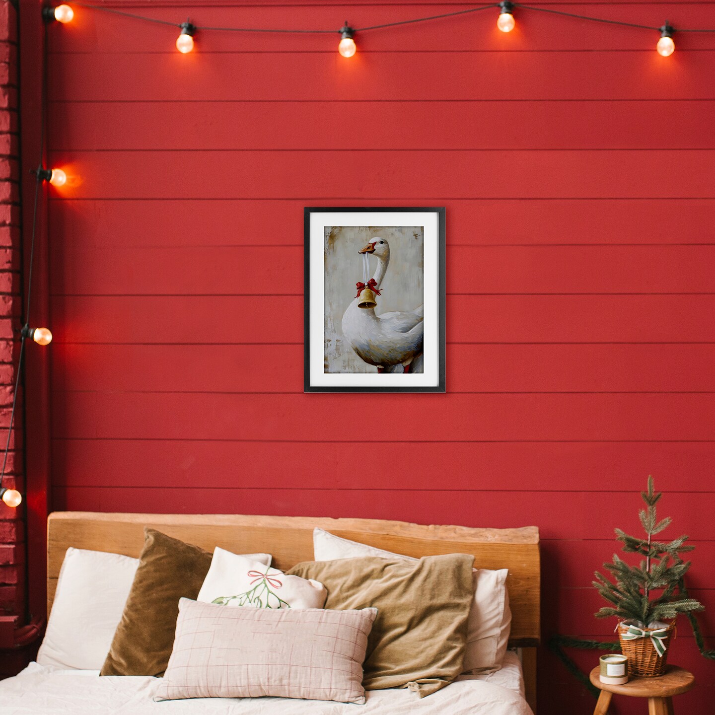 Stupell Industries Festive Jingle Goose Framed Print Under Glass, design by Petal Prints Design