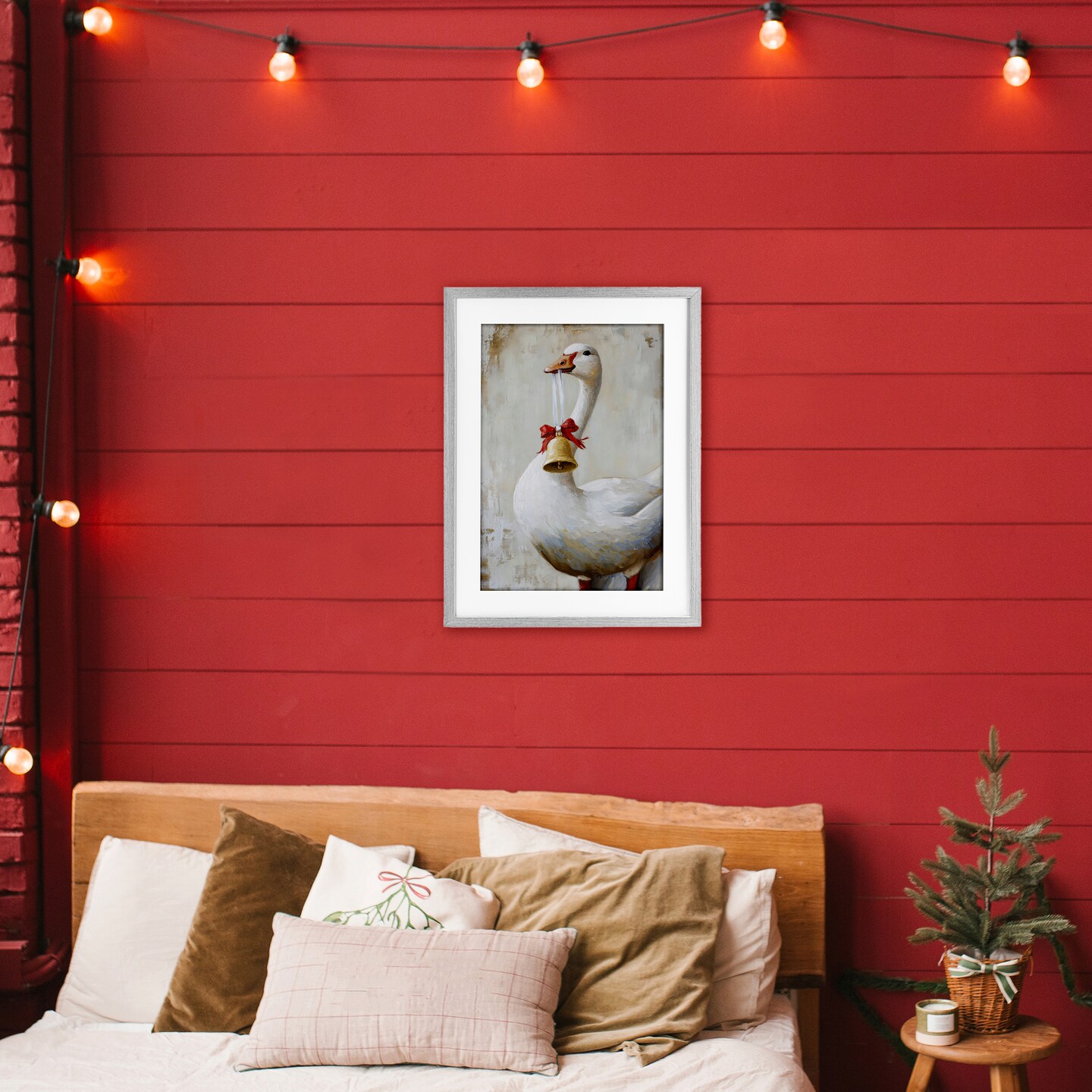 Stupell Industries Festive Jingle Goose Framed Print Under Glass, design by Petal Prints Design