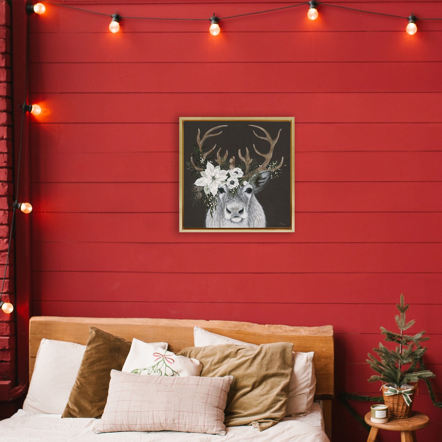 Stupell Industries Festive Reindeer with White Florals Floating Frame, design by Hollihocks Art