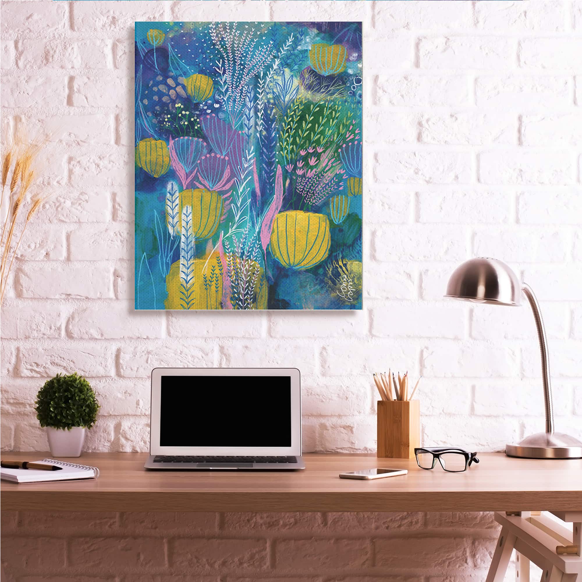 Stupell Industries Field of Abstract Florals Blue Green Yellow Canvas Wall Art