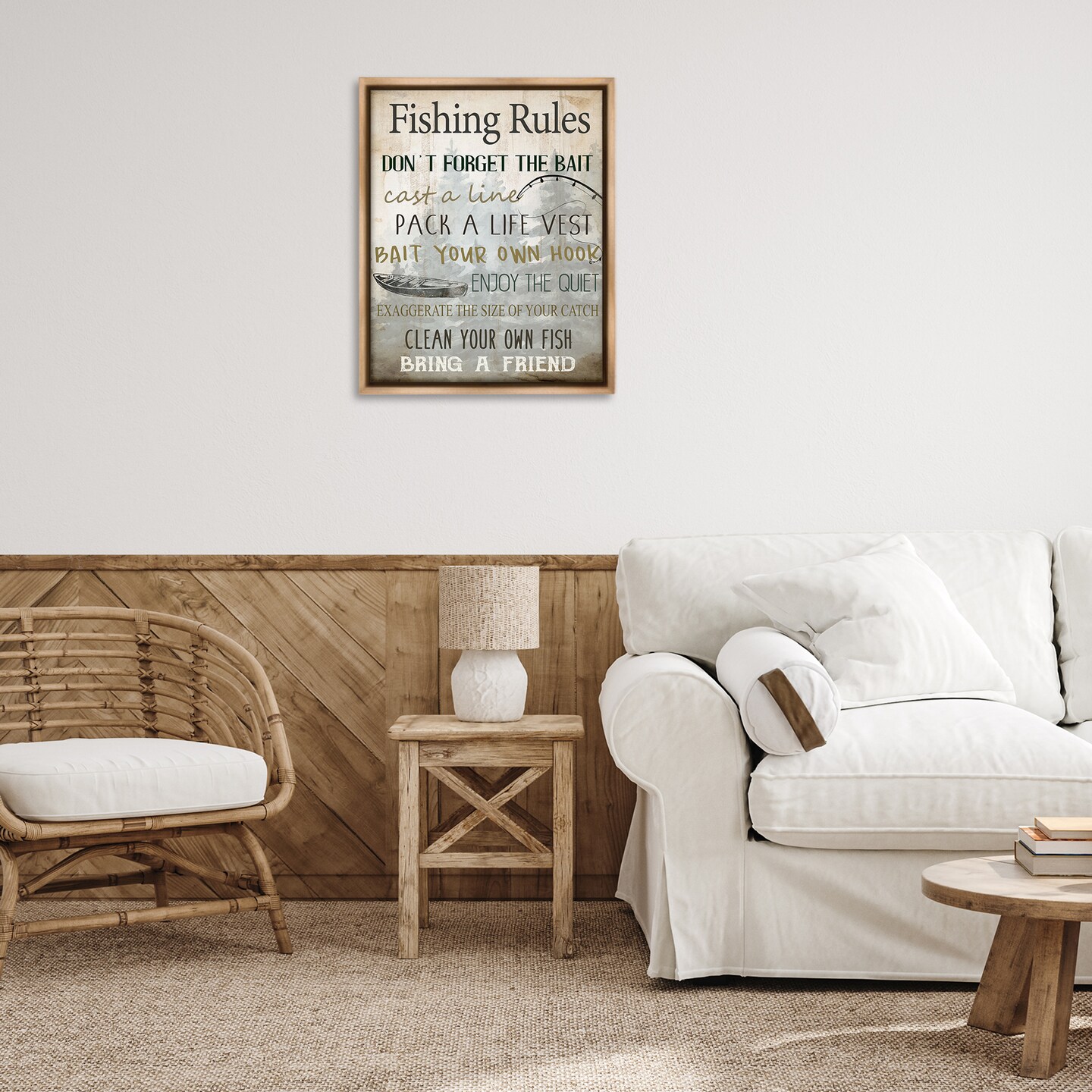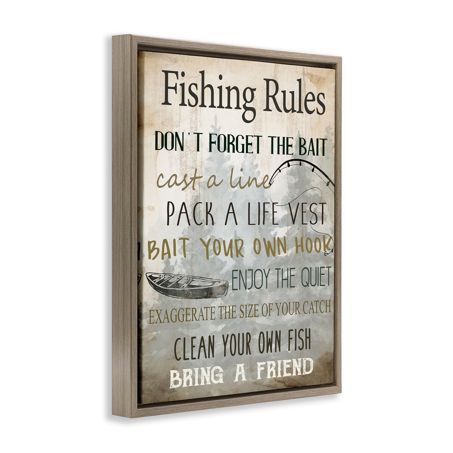 Stupell Industries Fishing Rules List Framed Floater Canvas Wall Art Design by Kim Allen