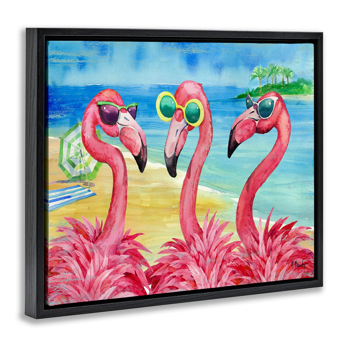 Stupell Industries Flamingo Girlfriends Tropical Coast Floating Frame Design By Paul Brent