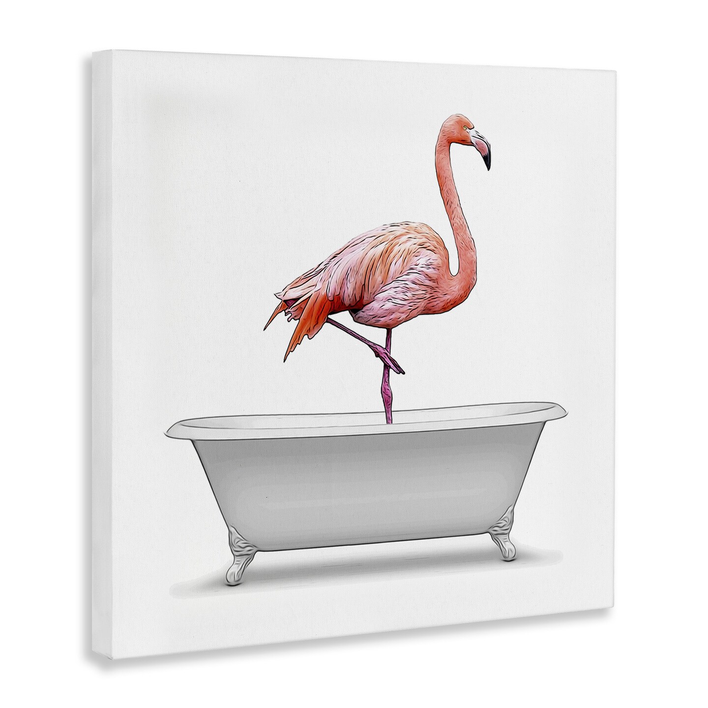 Stupell Industries Flamingo Standing Antique Bathtub Canvas Wall Art