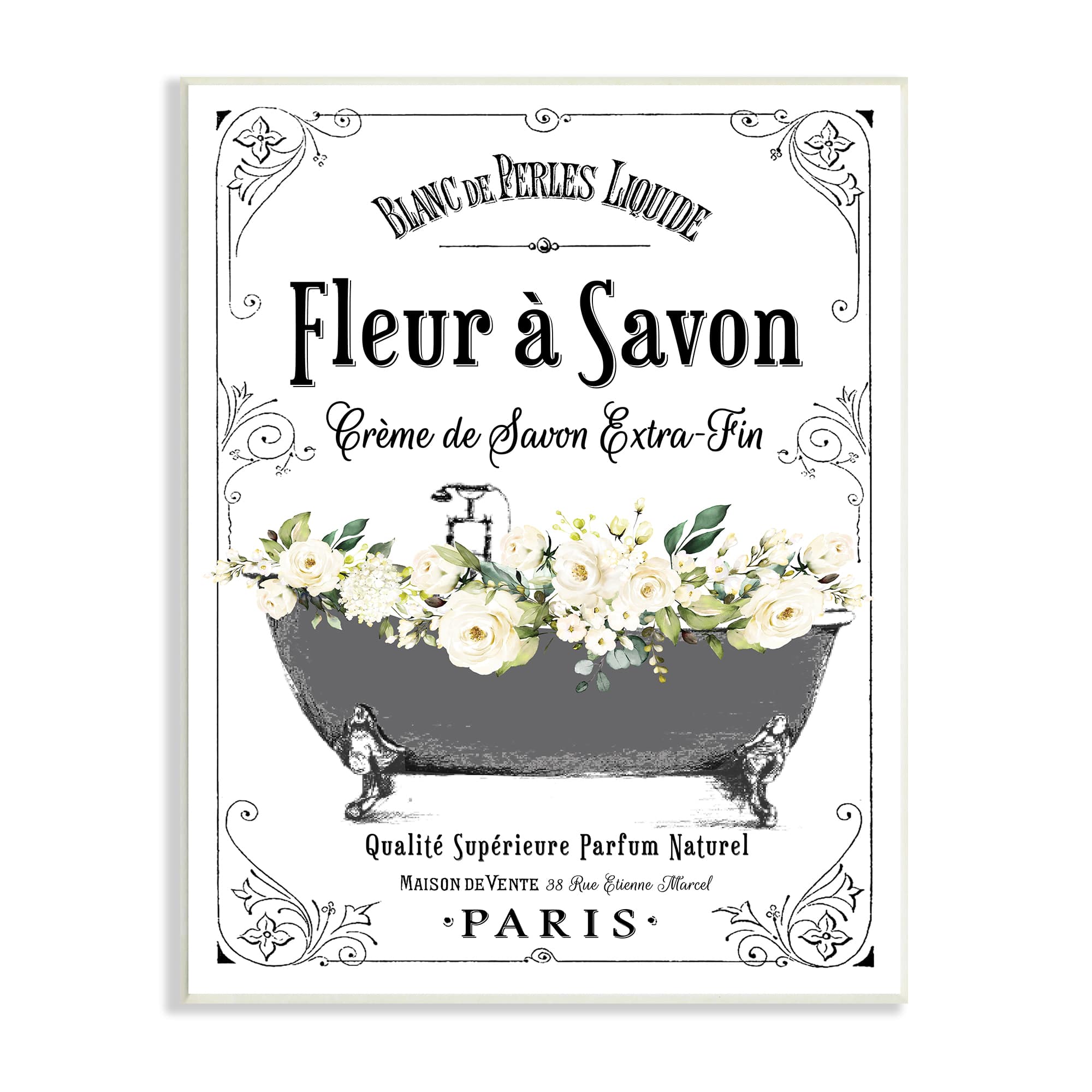 Stupell Industries Fleur a Savon Vintage Parisian Bathroom Floral Tub Wood Wall Plaque