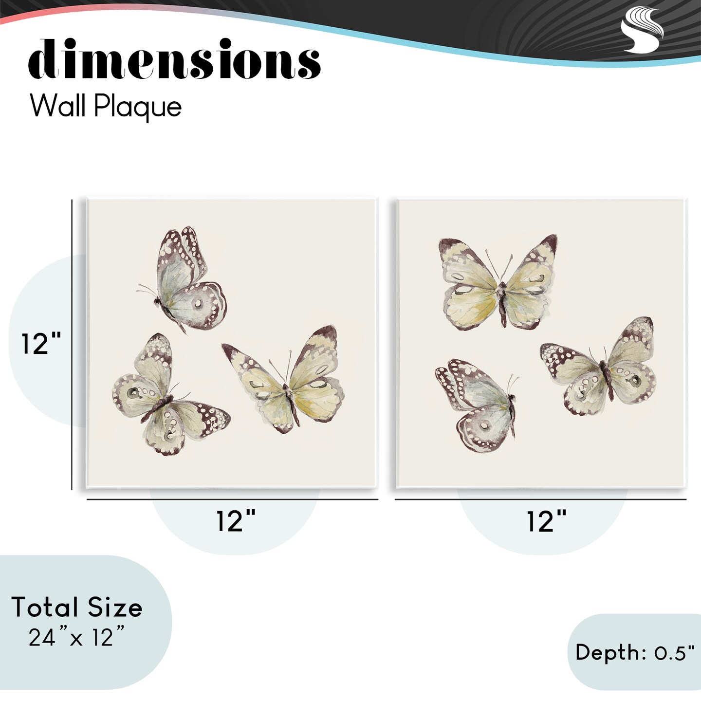 Stupell Industries Flight of Butterflies on Beige 2pc Wall Plaque Set, design by Patricia Pinto