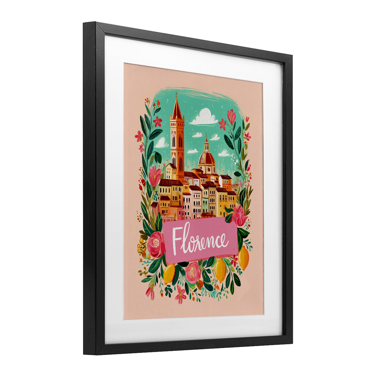 Stupell Industries Floral Bordered Florence Framed Print Under Glass, design by Yen