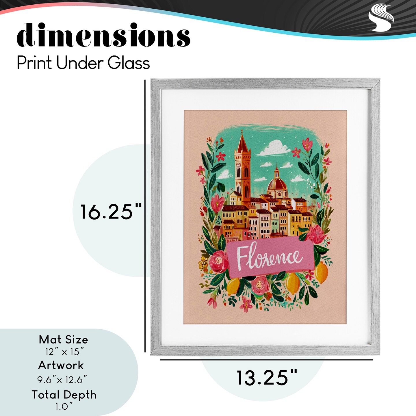 Stupell Industries Floral Bordered Florence Framed Print Under Glass, design by Yen