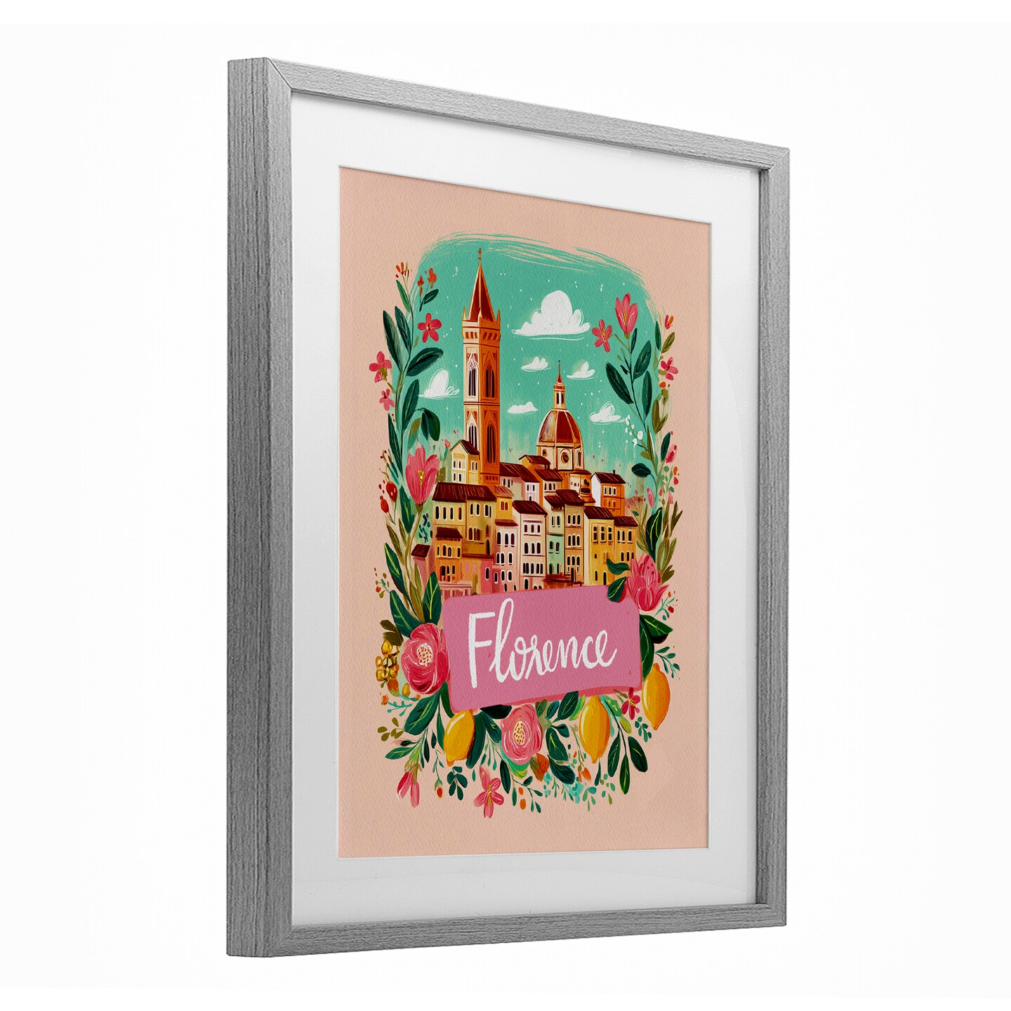 Stupell Industries Floral Bordered Florence Framed Print Under Glass, design by Yen