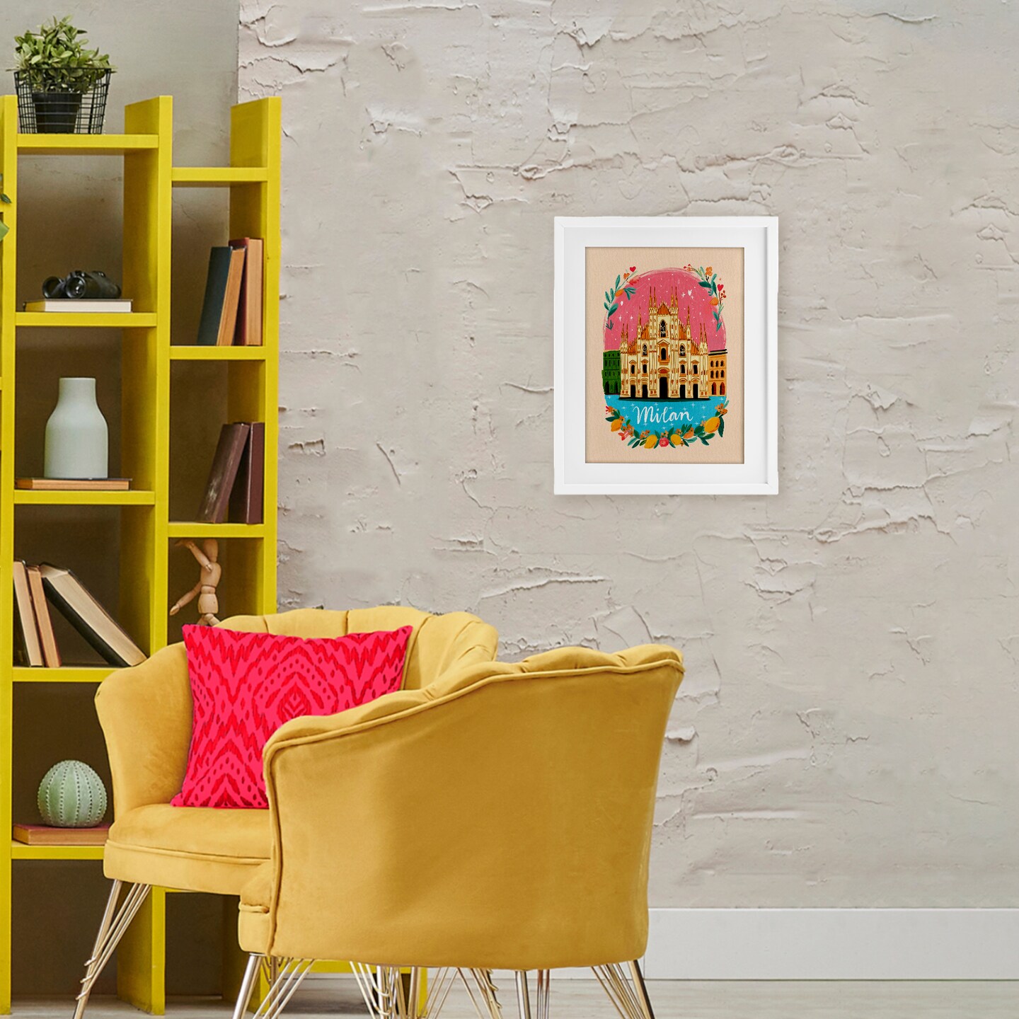Stupell Industries Floral Bordered Milan Framed Print Under Glass, design by Yen