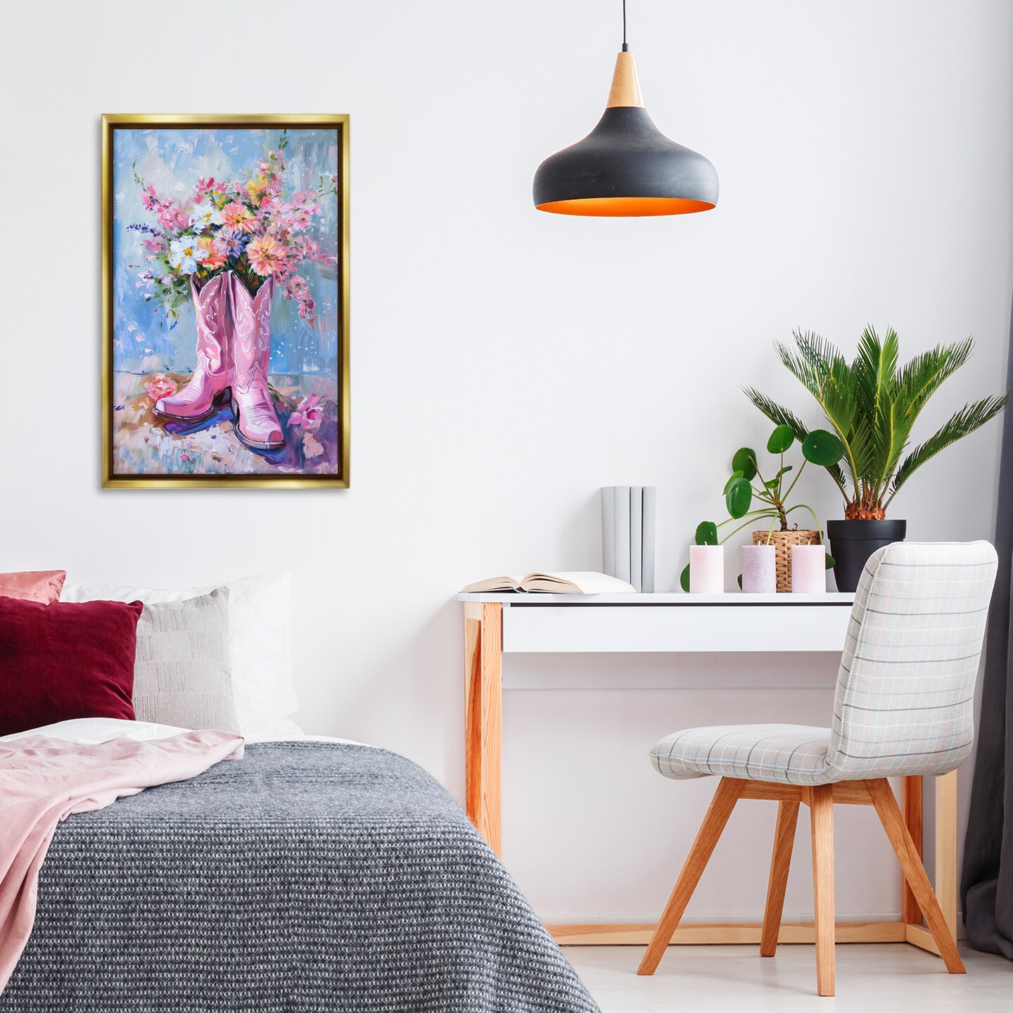Stupell Industries Floral Cowgirl Boots Framed Floater Canvas Wall Art Design by Petal Prints Design