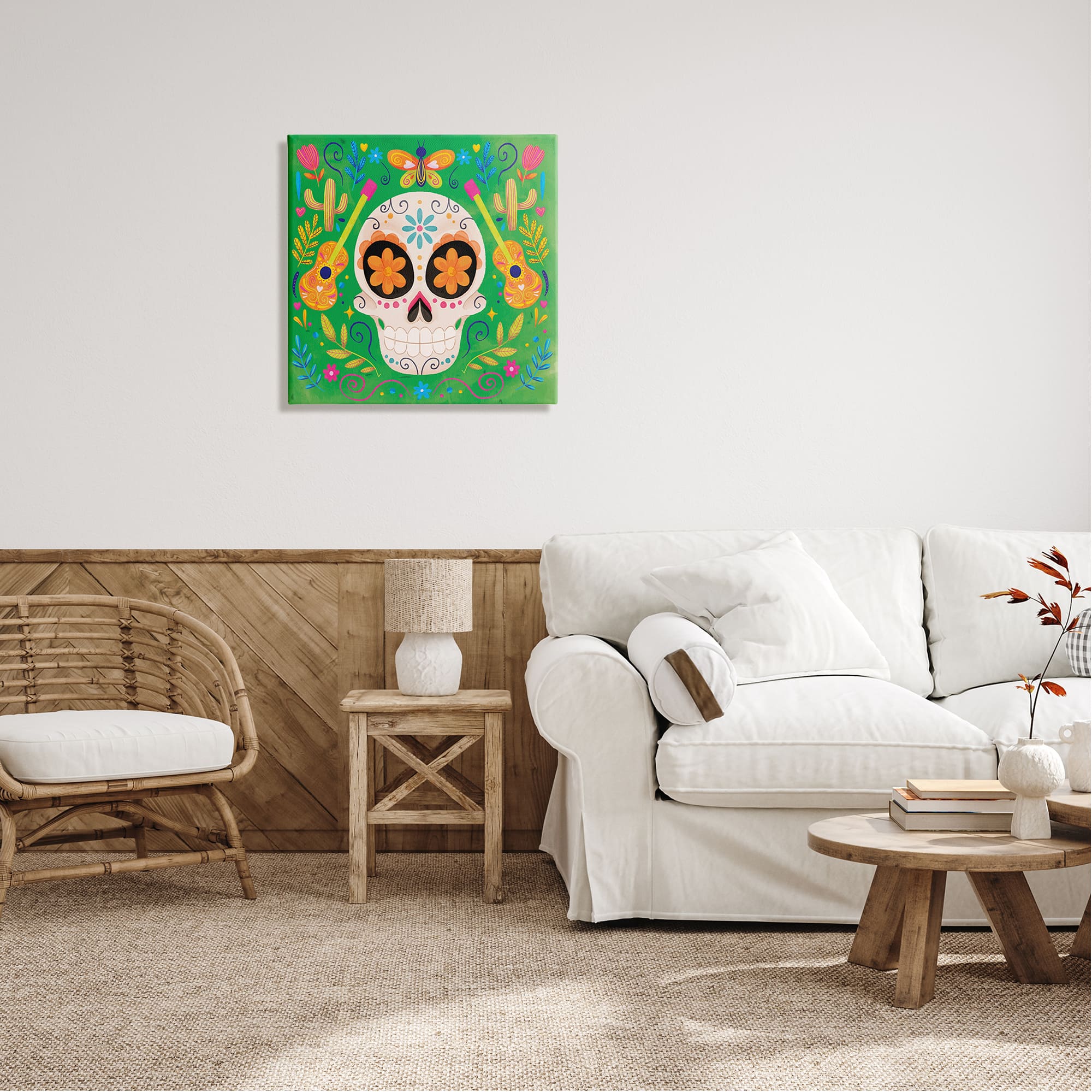 Stupell Industries Floral Day Of Dead Guitar Skull Canvas Wall Art