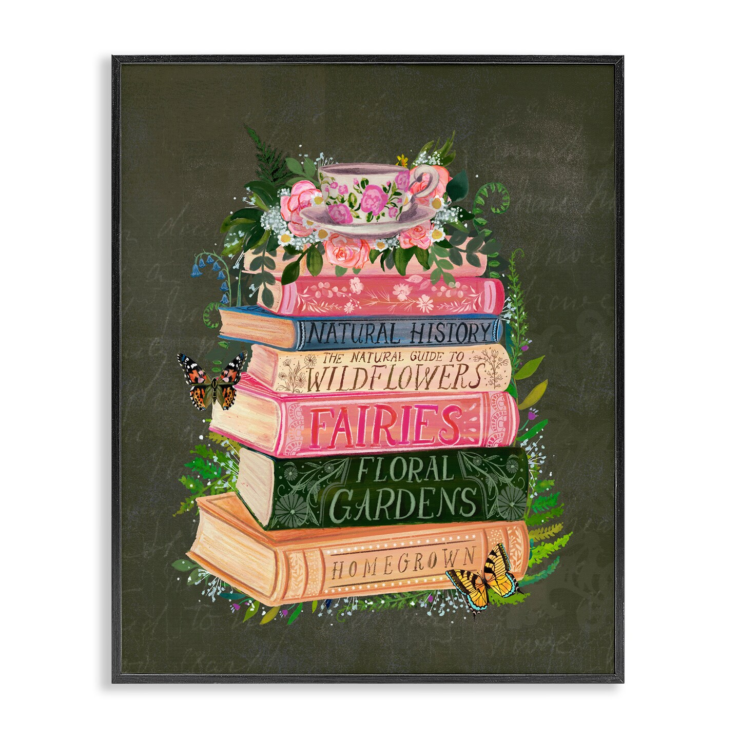 Stupell Industries Floral Fairy Book Stack Framed Giclee, design by Glad You're Here Co.