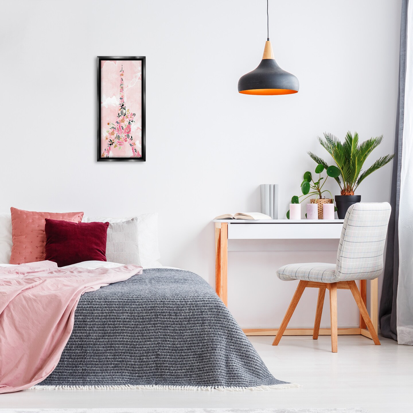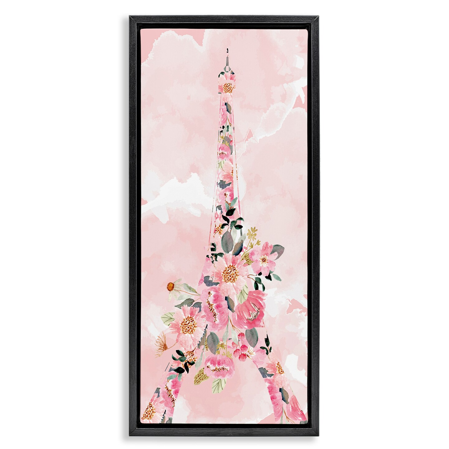 Stupell Industries Floral Pattern Eiffel Tower Framed Floater Canvas Wall Art