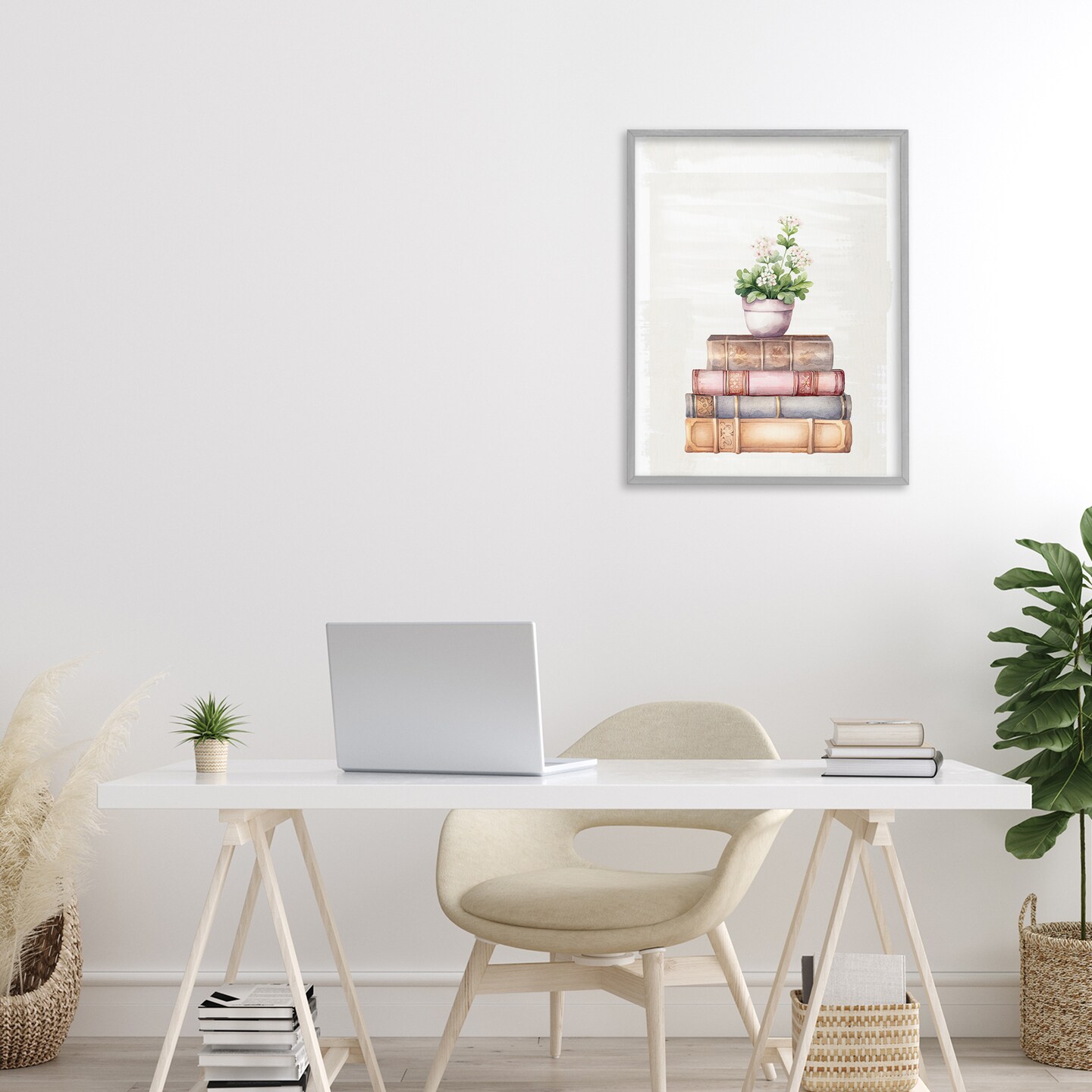 Stupell Industries Floral Pot & Vintage Books Framed Giclee, design by Kim Allen