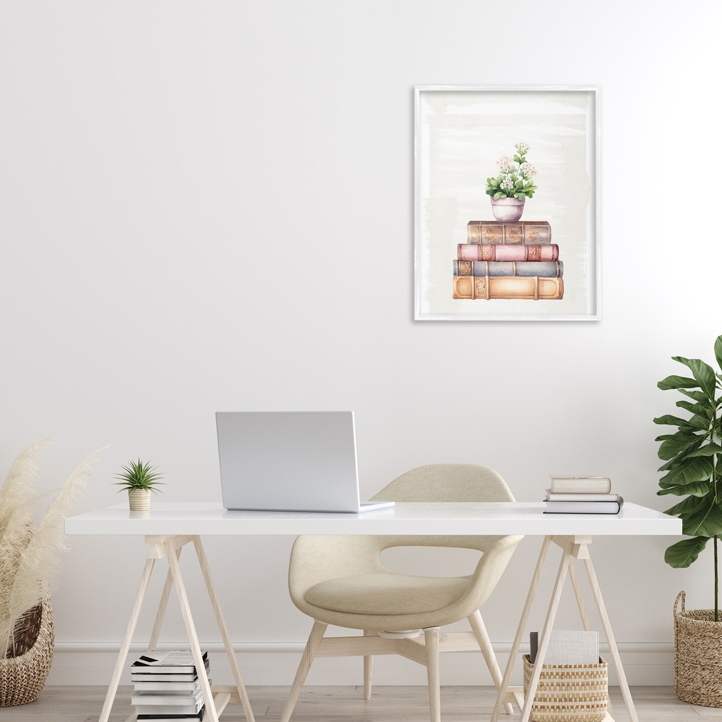 Stupell Industries Floral Pot & Vintage Books Framed Giclee, design by Kim Allen