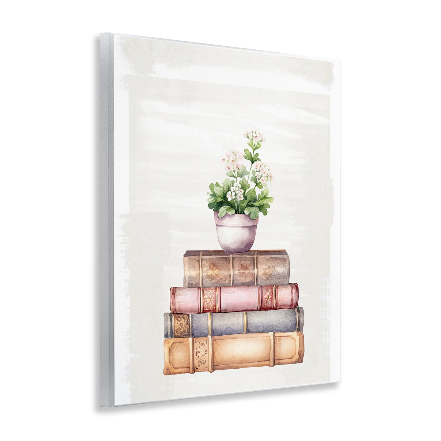 Stupell Industries Floral Pot & Vintage Books Wall Plaque, design by Kim Allen