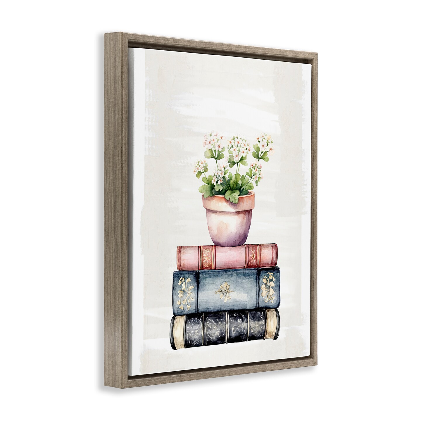 Stupell Industries Floral Stacks with Vintage Books Floating Frame, design by Kim Allen
