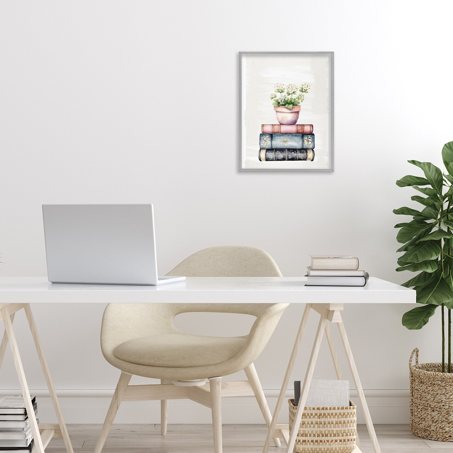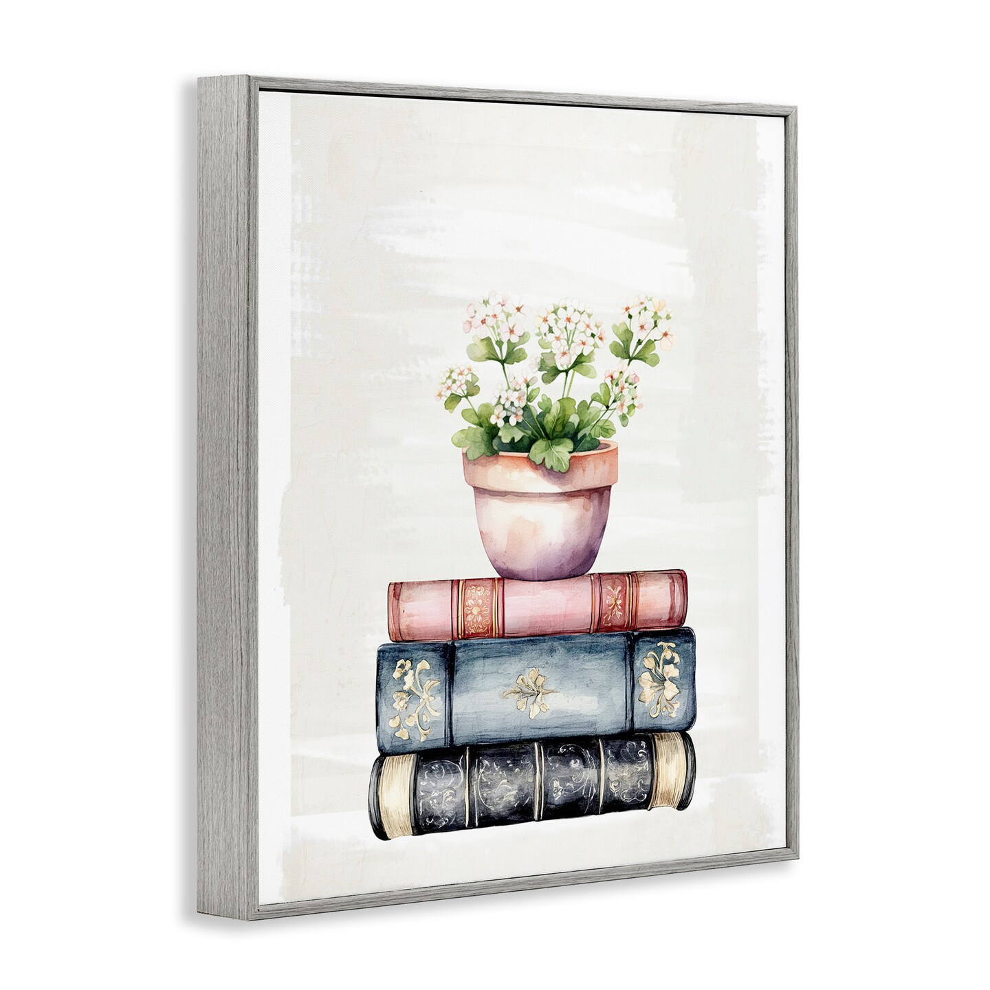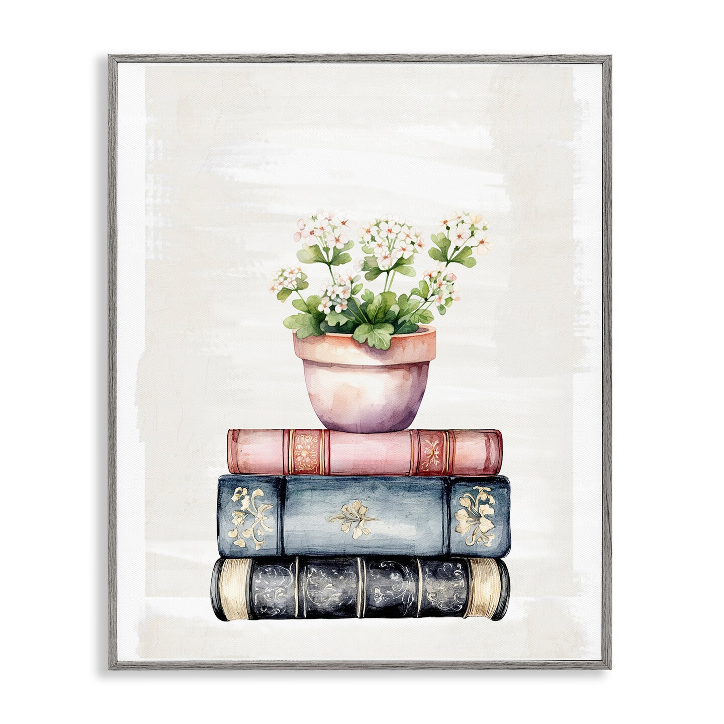 Stupell Industries Floral Stacks with Vintage Books Framed Giclee, design by Kim Allen