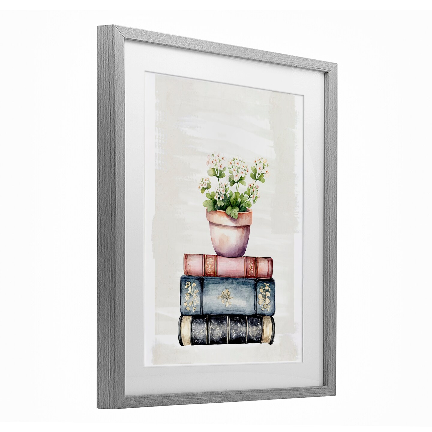 Stupell Industries Floral Stacks with Vintage Books Framed Print Under Glass, design by Kim Allen