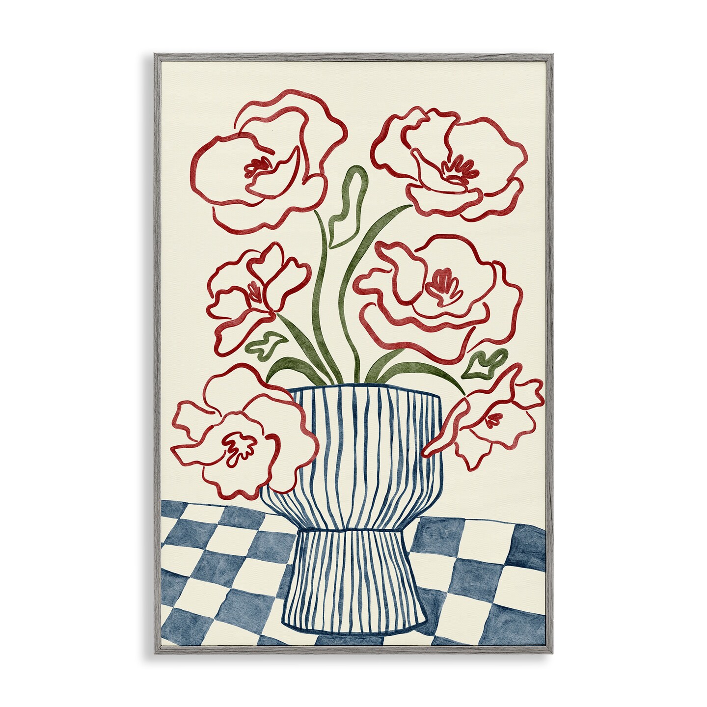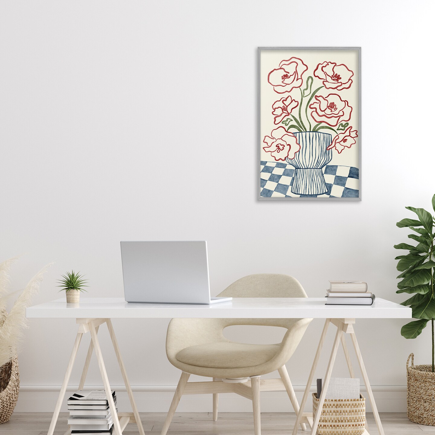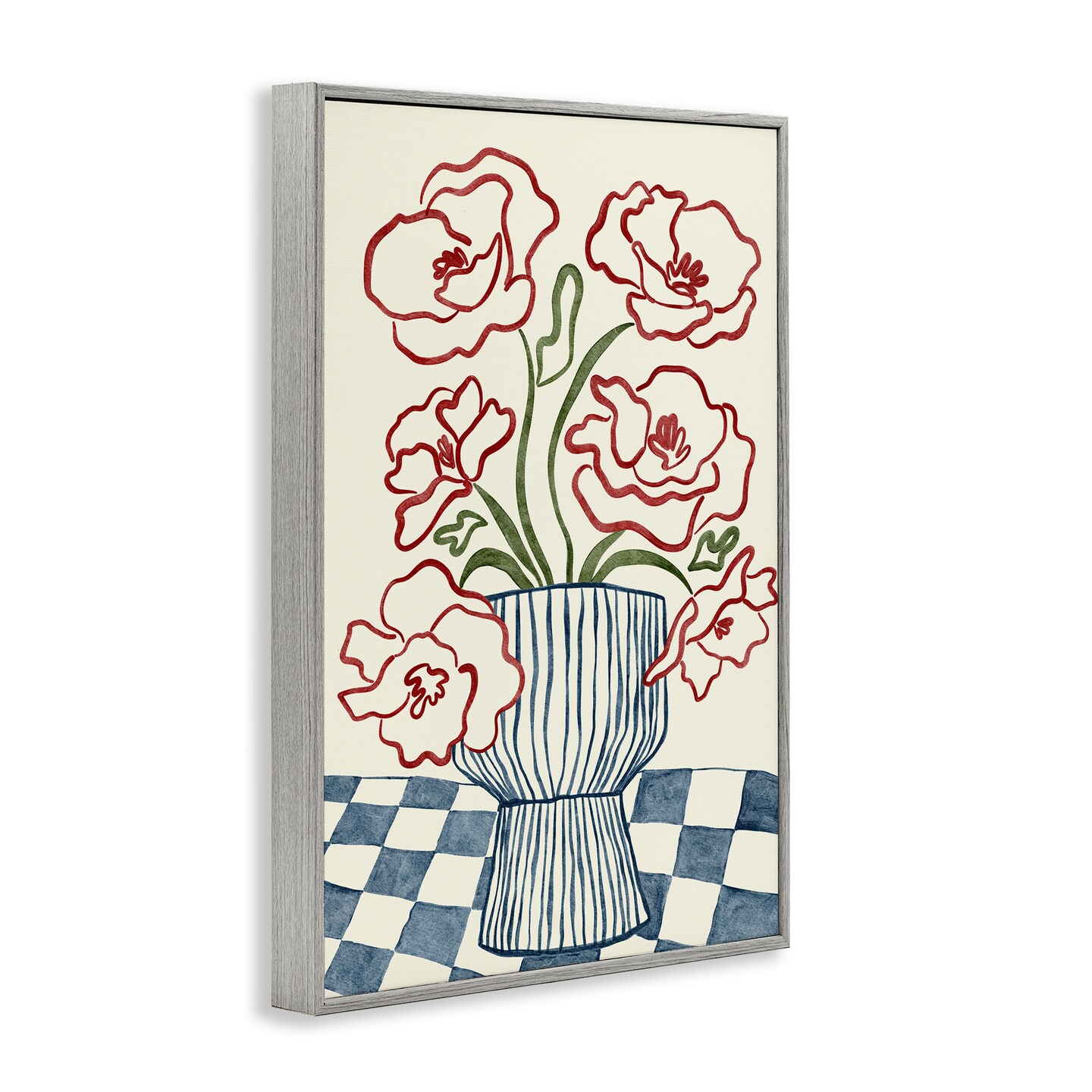 Stupell Industries Flower Vase on Minimal Checkered Framed Giclee, design by JJ Design House LLC