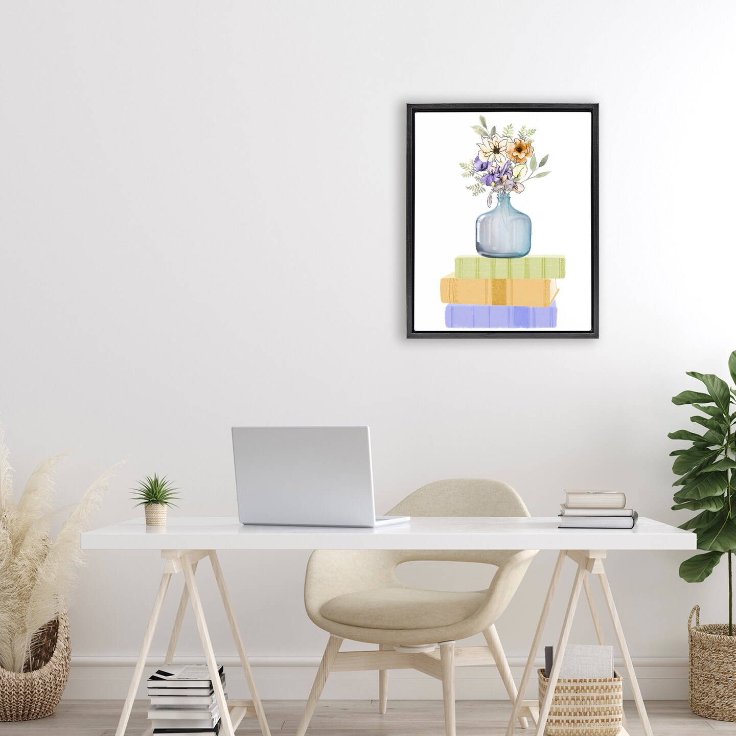 Stupell Industries Flowers Vase On Books Floating Frame, design by Marcus Prime