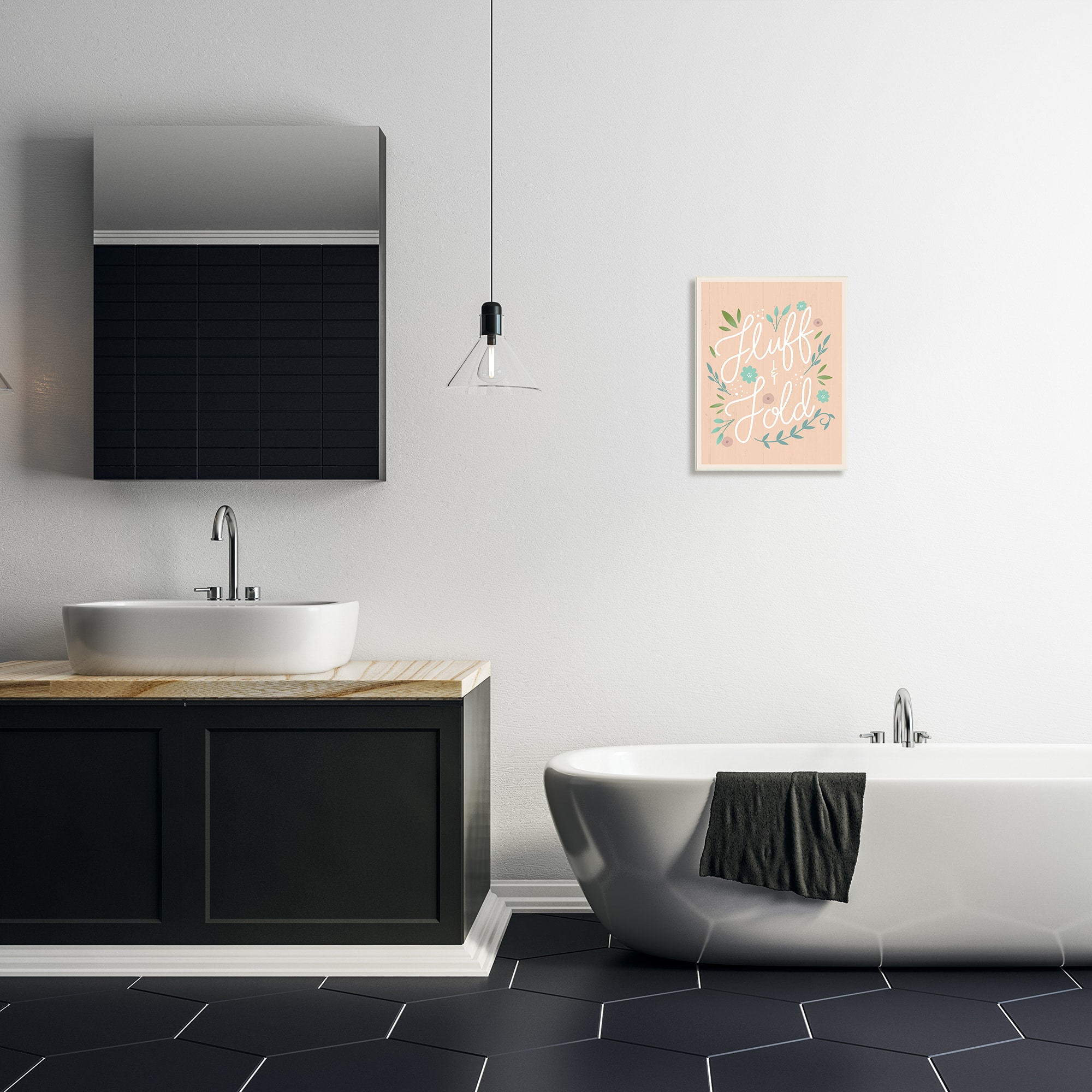 Stupell Industries Fluff & Fold Laundry Phrase Florals Farmhouse Pattern Wall Plaque