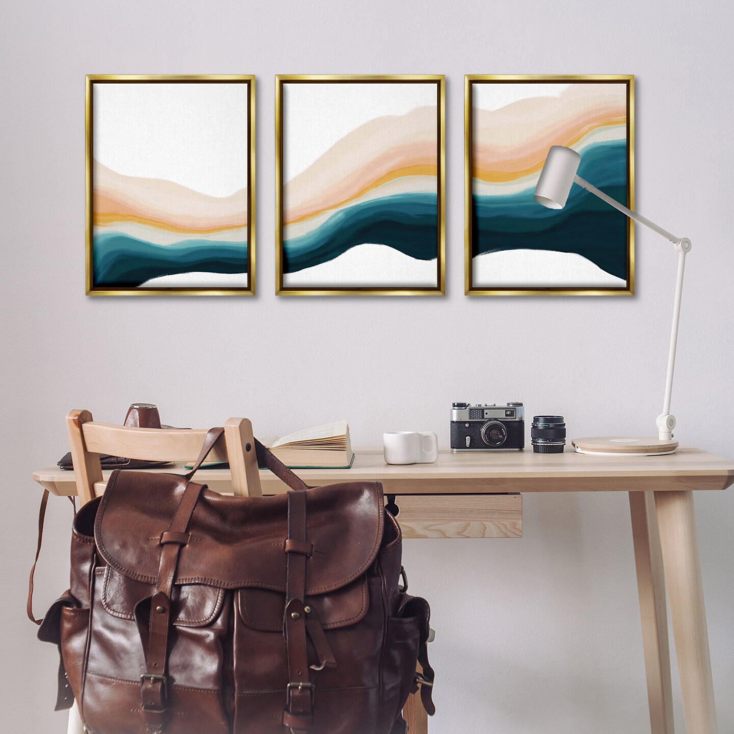 Stupell Industries Fluid Peach Swirl 3pc Floater Framed Canvas Wall Art Set Design by JJ Design House, LLC.