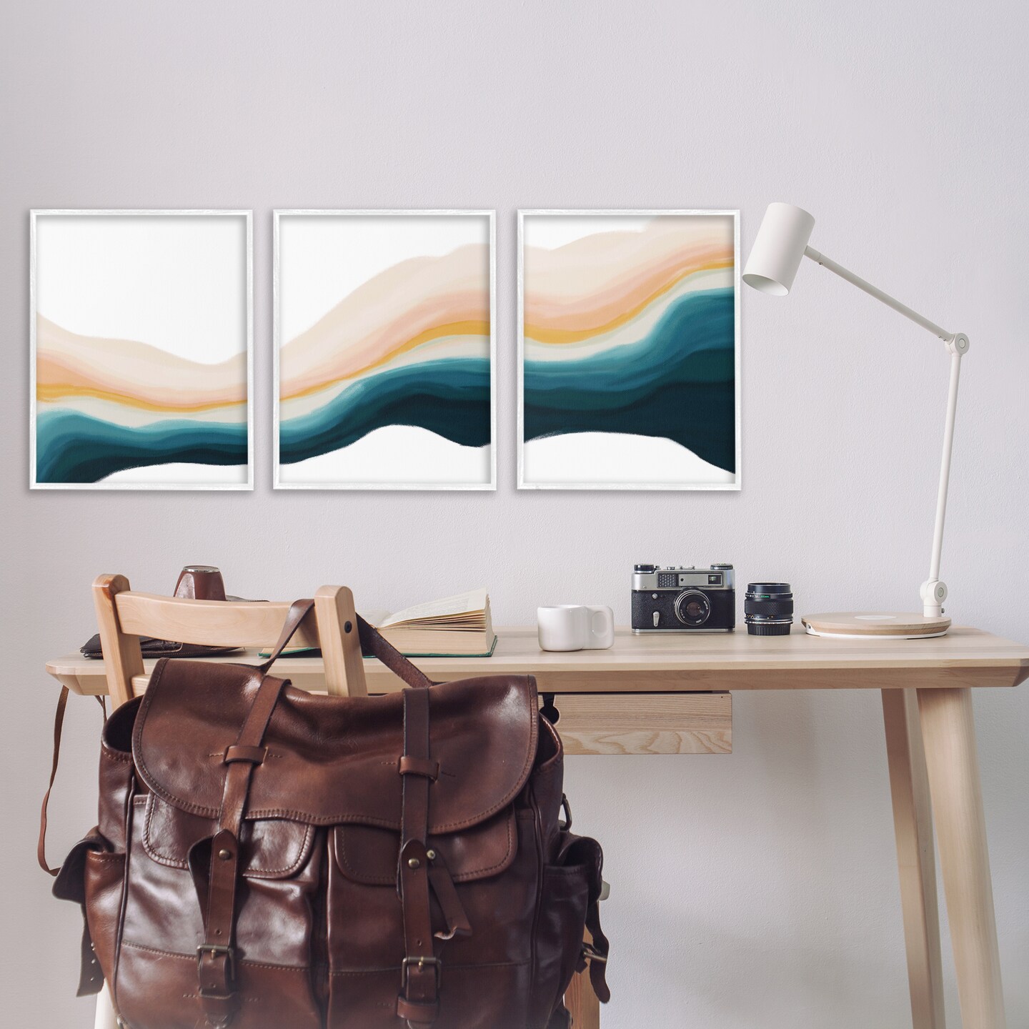 Stupell Industries Fluid Peach Swirl 3pc Framed Giclee Wall Art Set Design by JJ Design House, LLC.