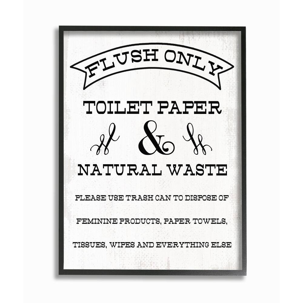 Stupell Industries Flush Only Toilet Paper Rustic Bathroom Sign Framed Wall Art