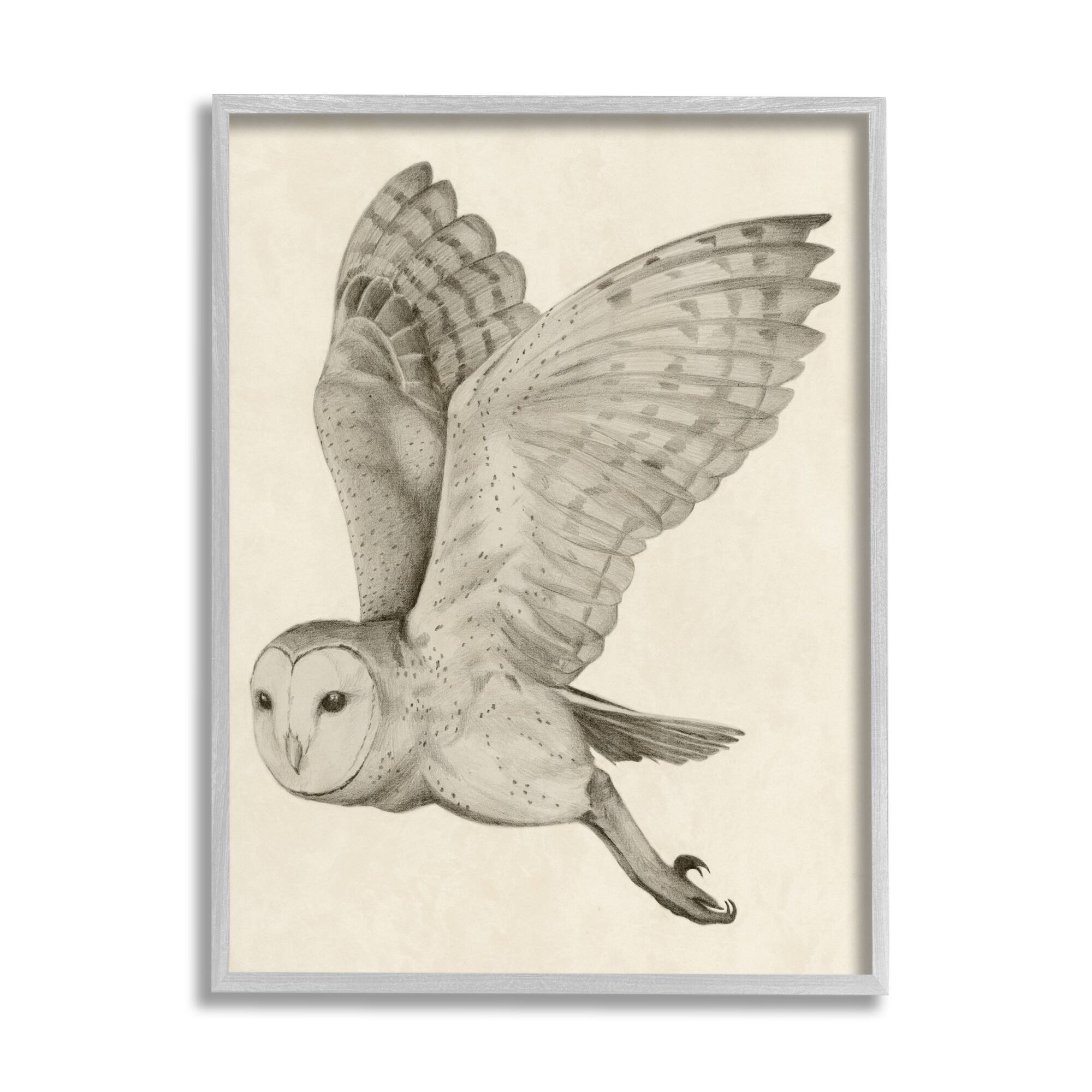 Stupell Industries Flying Barn Owl Wings Detailed Drawing Framed Giclee Art