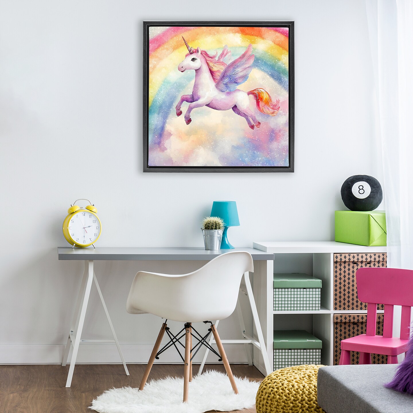 Stupell Industries Flying Unicorn In Rainbow Sky Floating Frame, design by Creative Studio