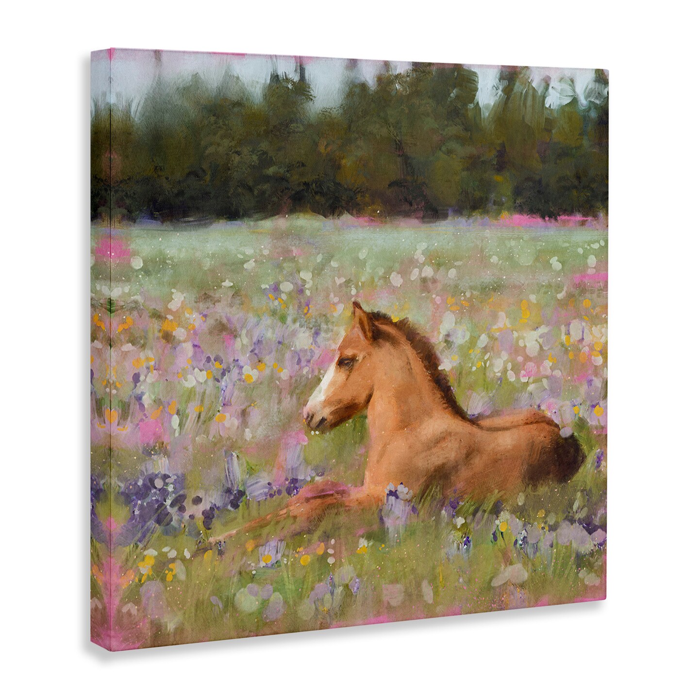 Stupell Industries Foal Horse Lounging Flower Meadow Canvas Wall Art