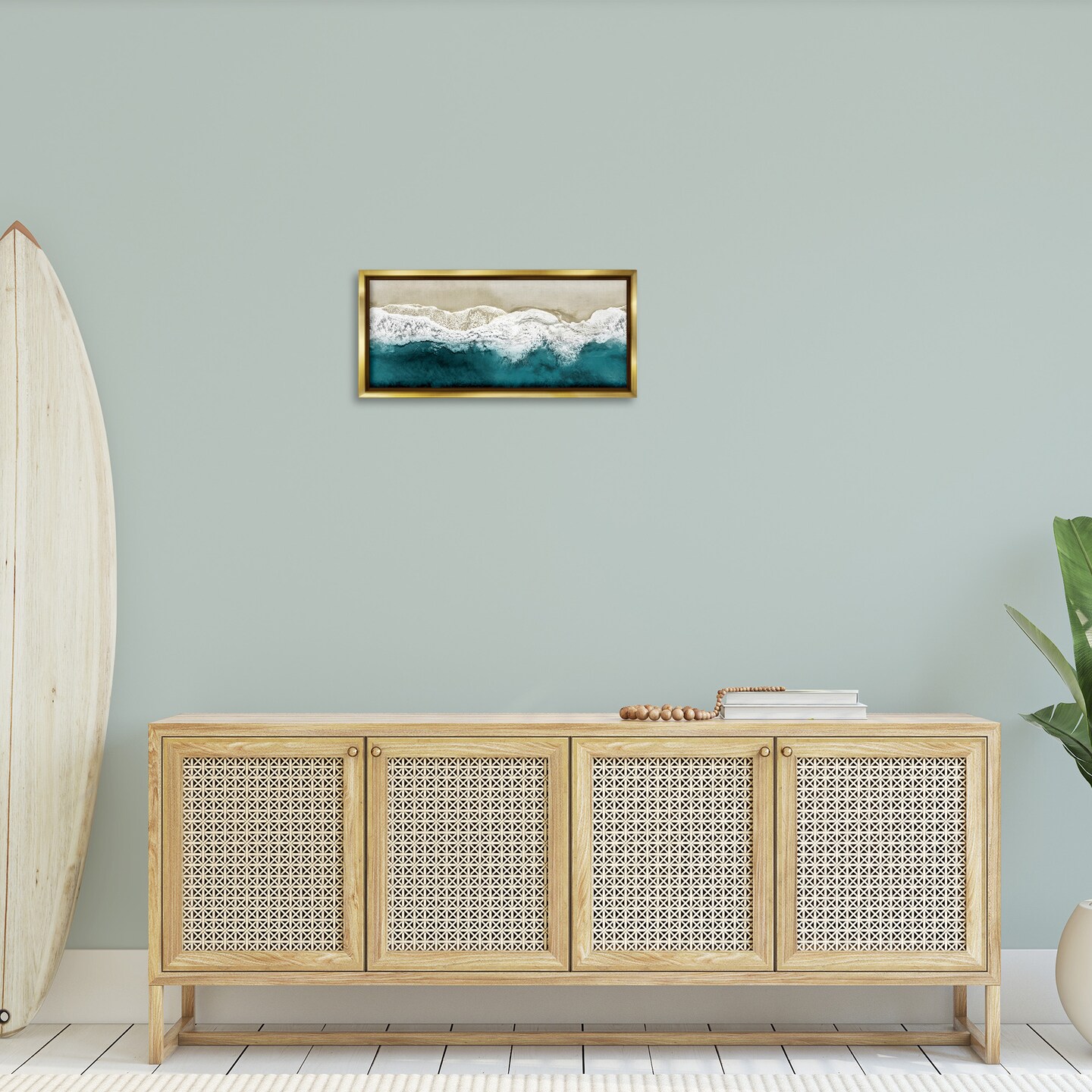 Stupell Industries Foamy Beach Coast Deep Ocean Framed Floater Canvas Wall Art