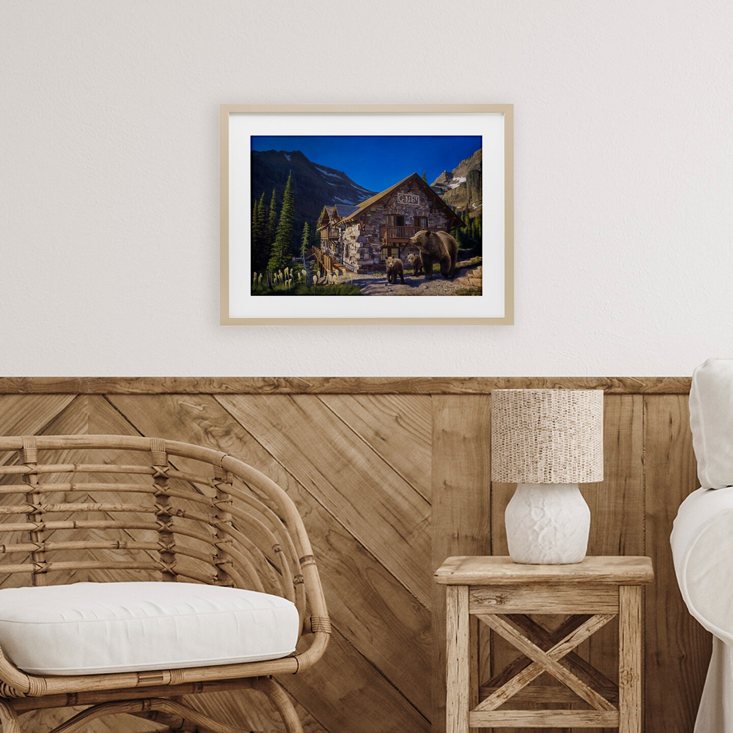 Stupell Industries Forest Cabin & Bears Framed Print Under Glass, design by James Corwin