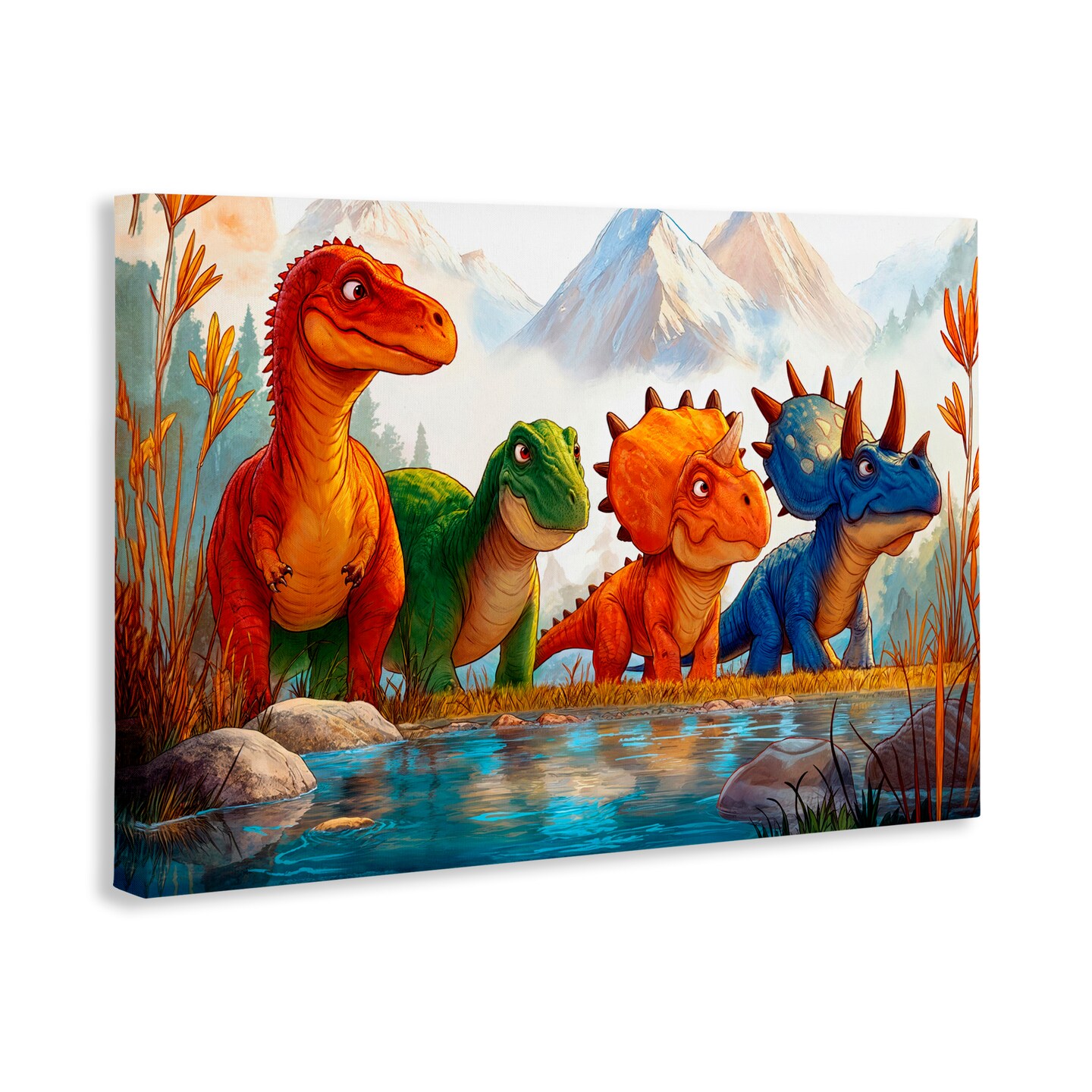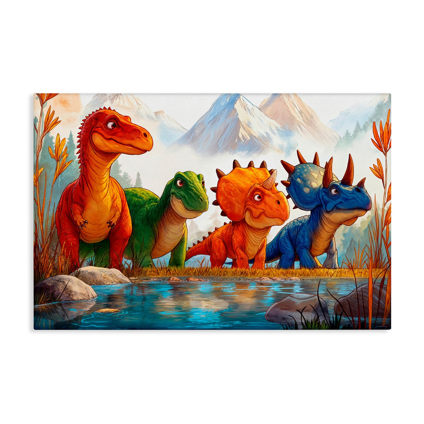 Stupell Industries Four Dinos By The Pond Canvas, design by Wumples