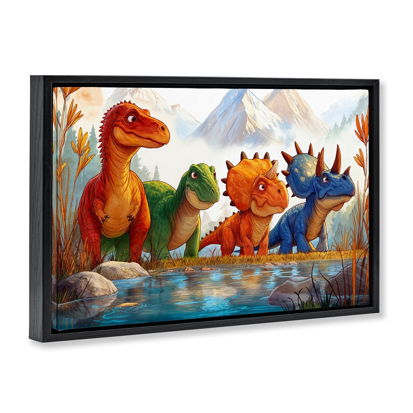 Stupell Industries Four Dinos By The Pond Floating Frame, design by Wumples