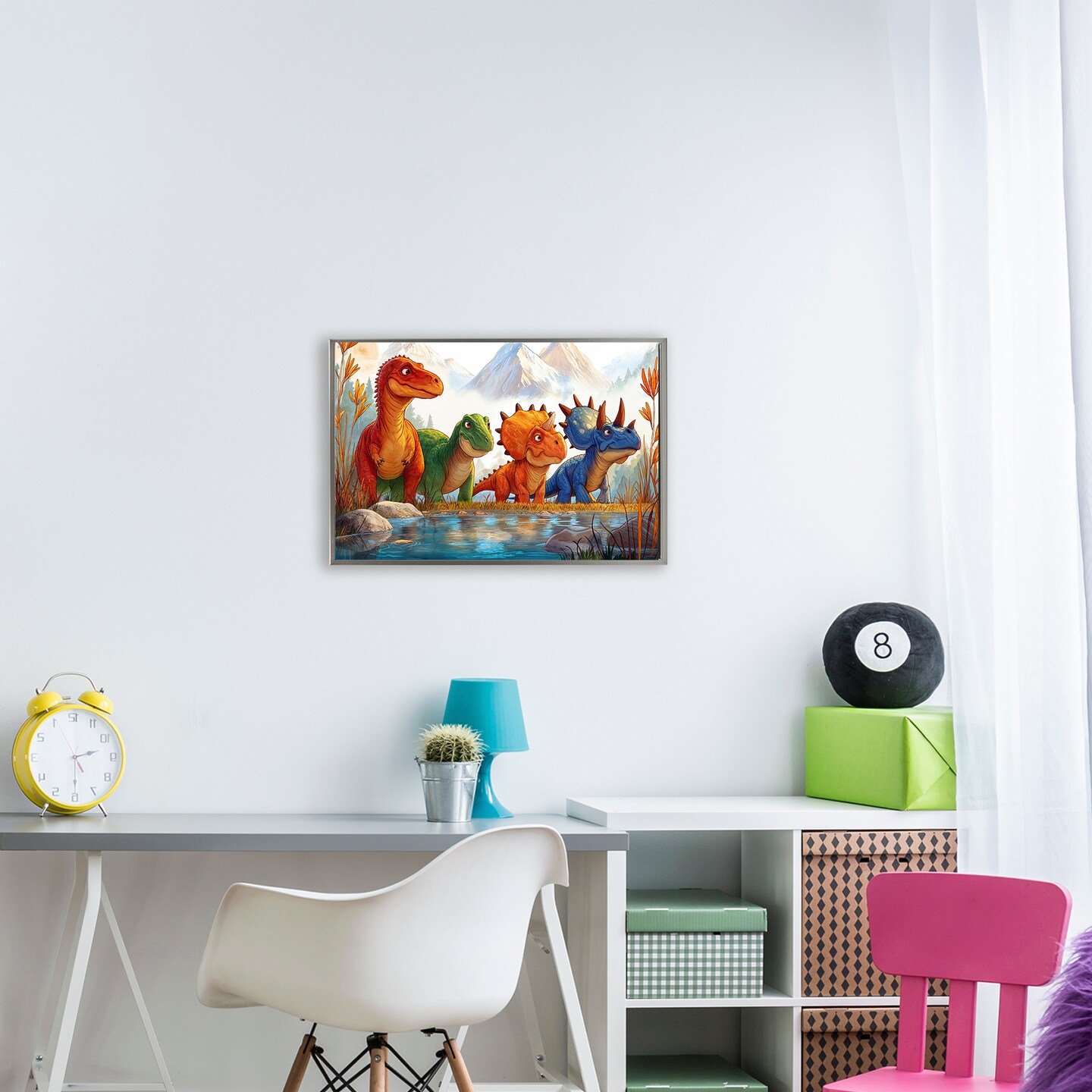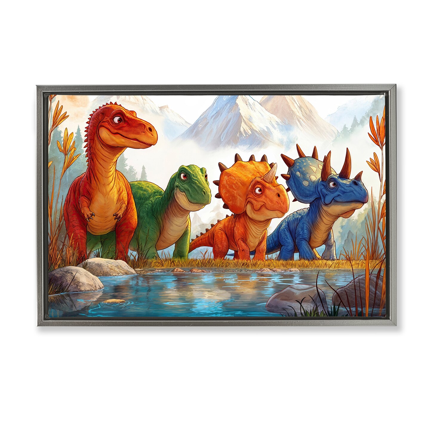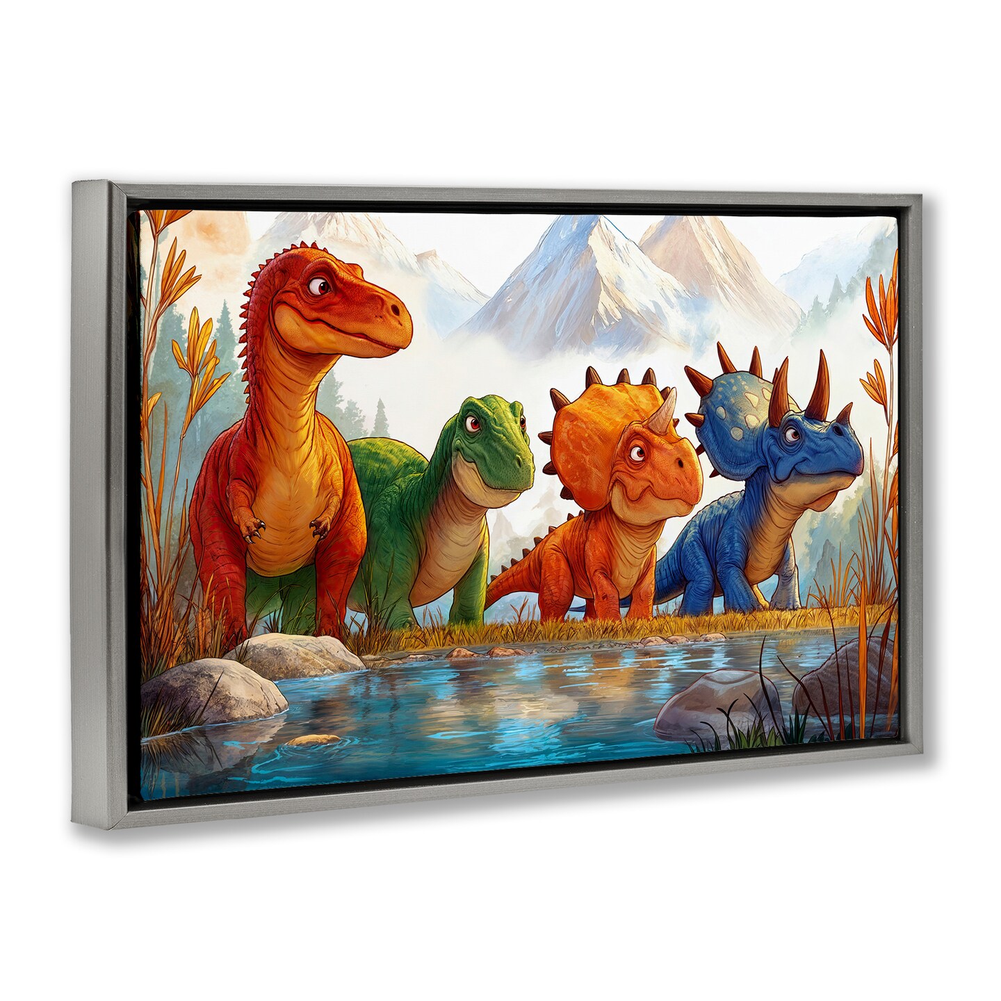 Stupell Industries Four Dinos By The Pond Floating Frame, design by Wumples